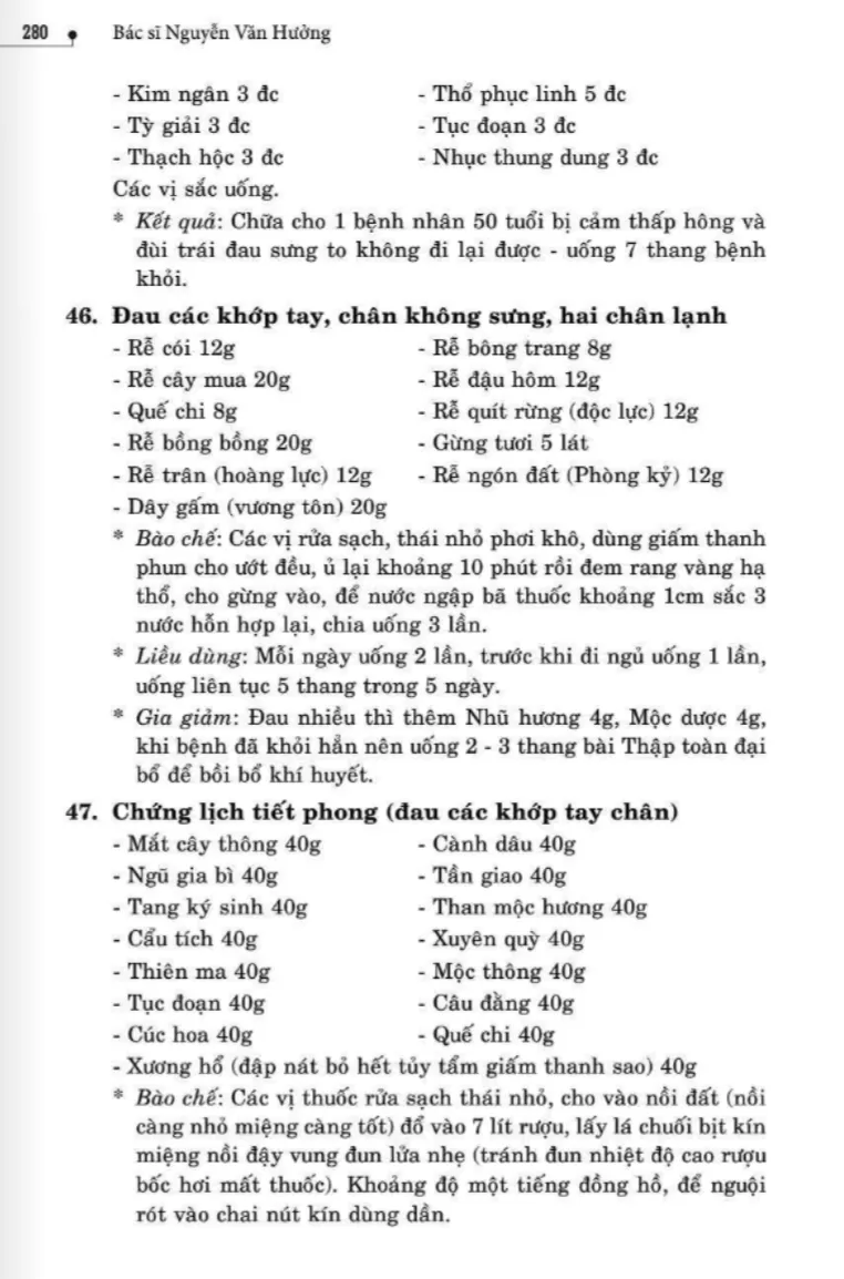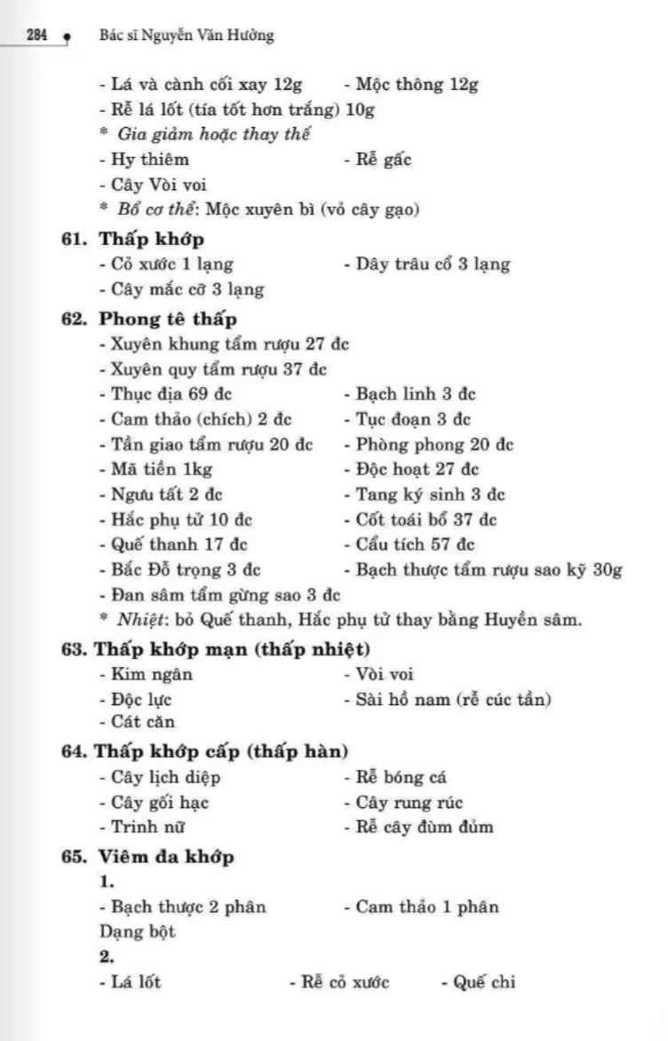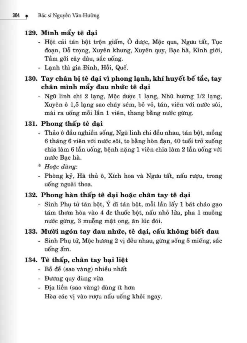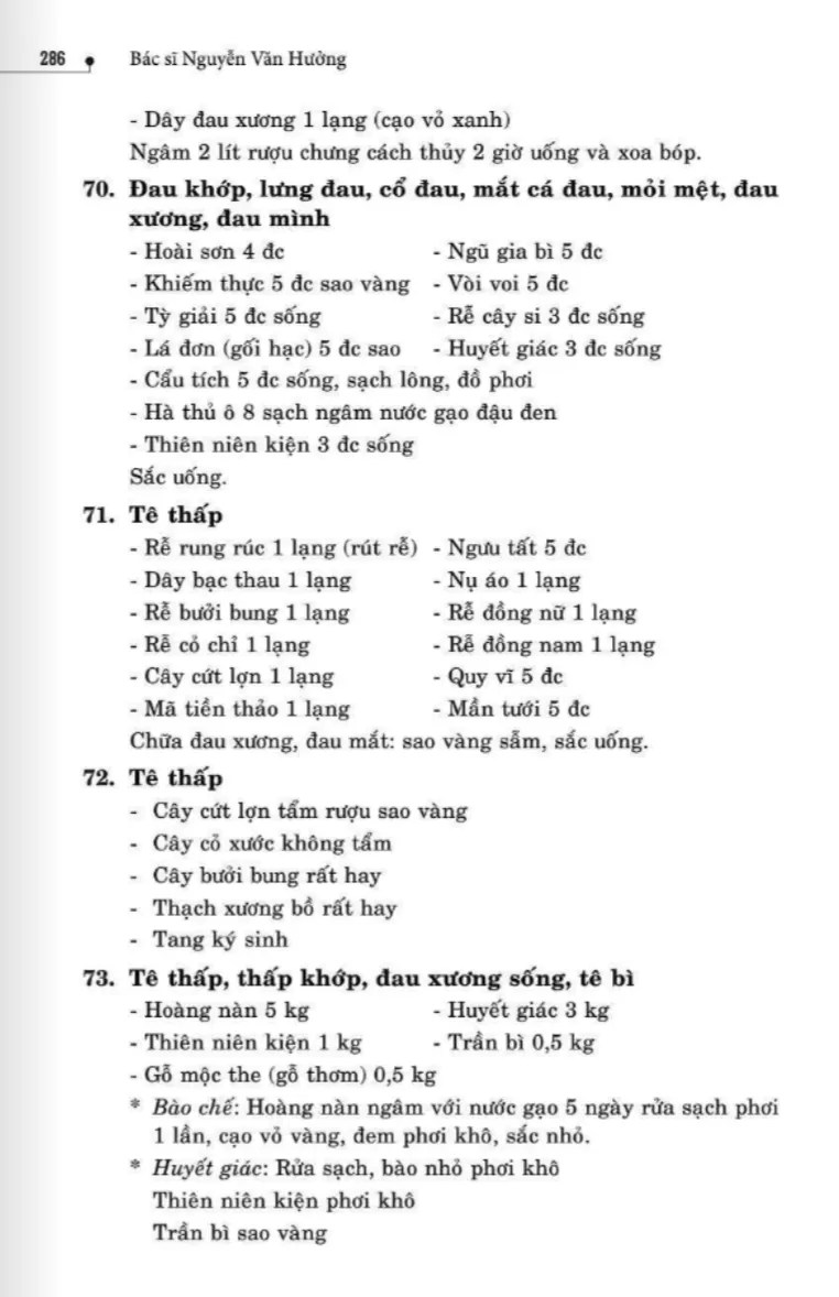 134 bài thuốc trị phong thấp, tê thấp