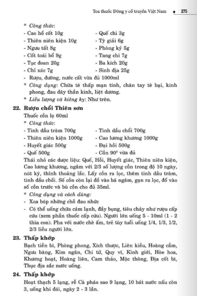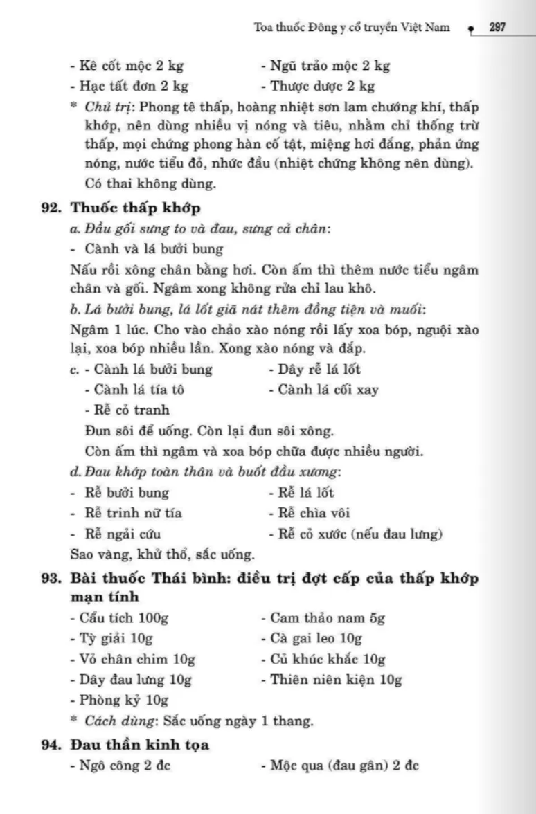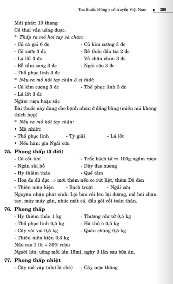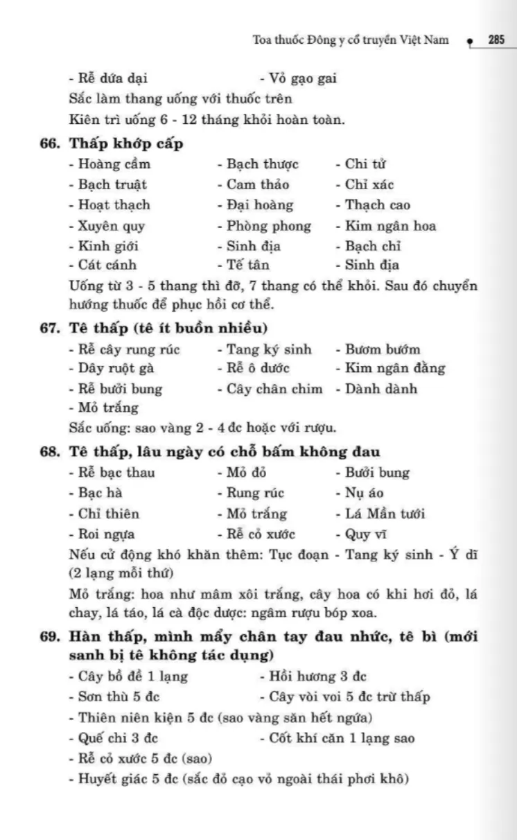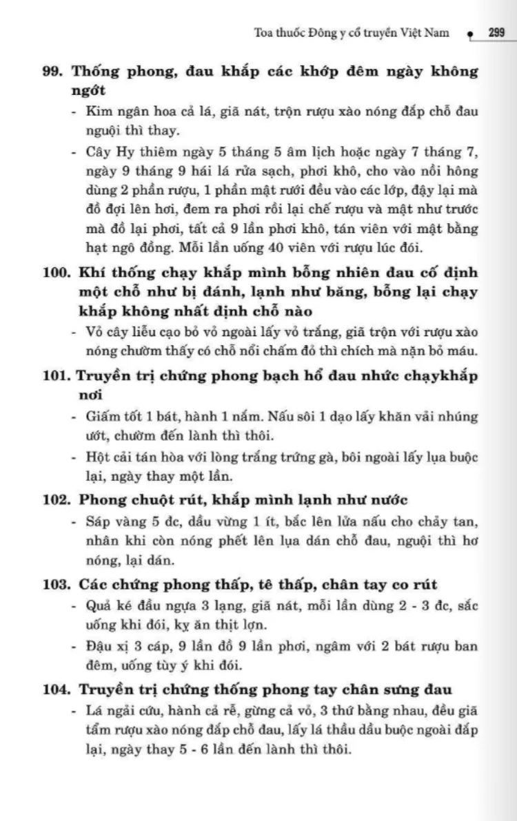 134 bài thuốc trị phong thấp, tê thấp