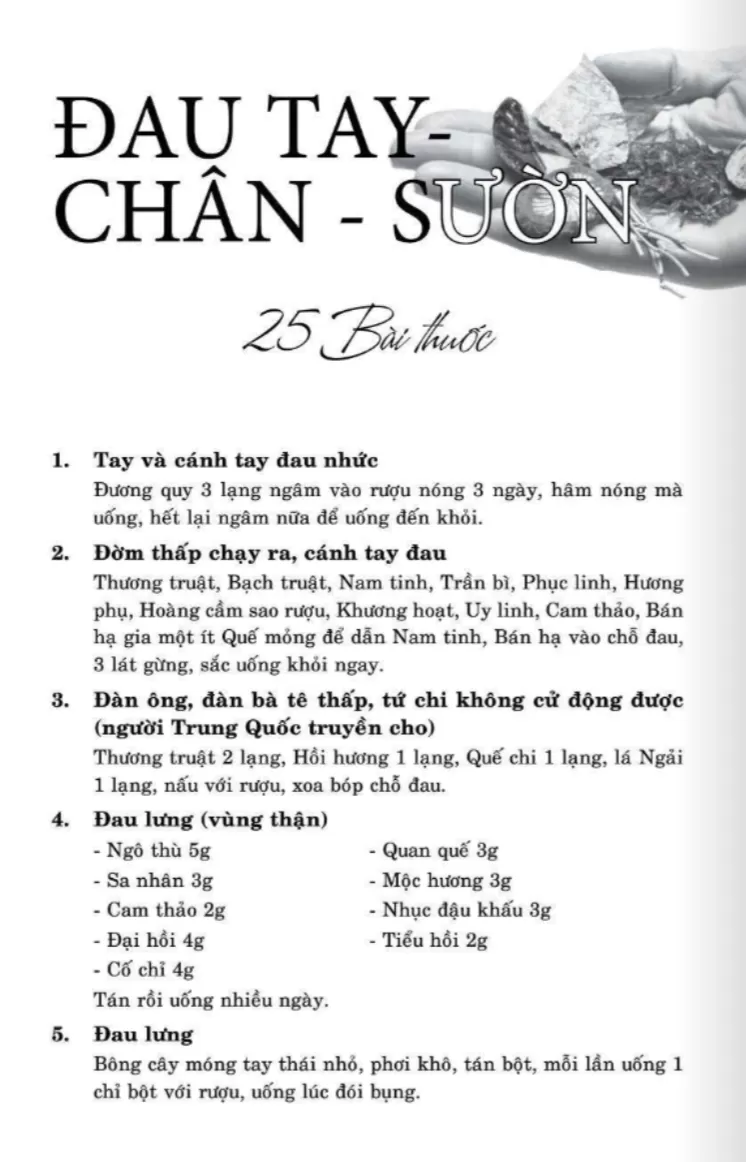 25 Bài thuốc đau tay - chân - sườn