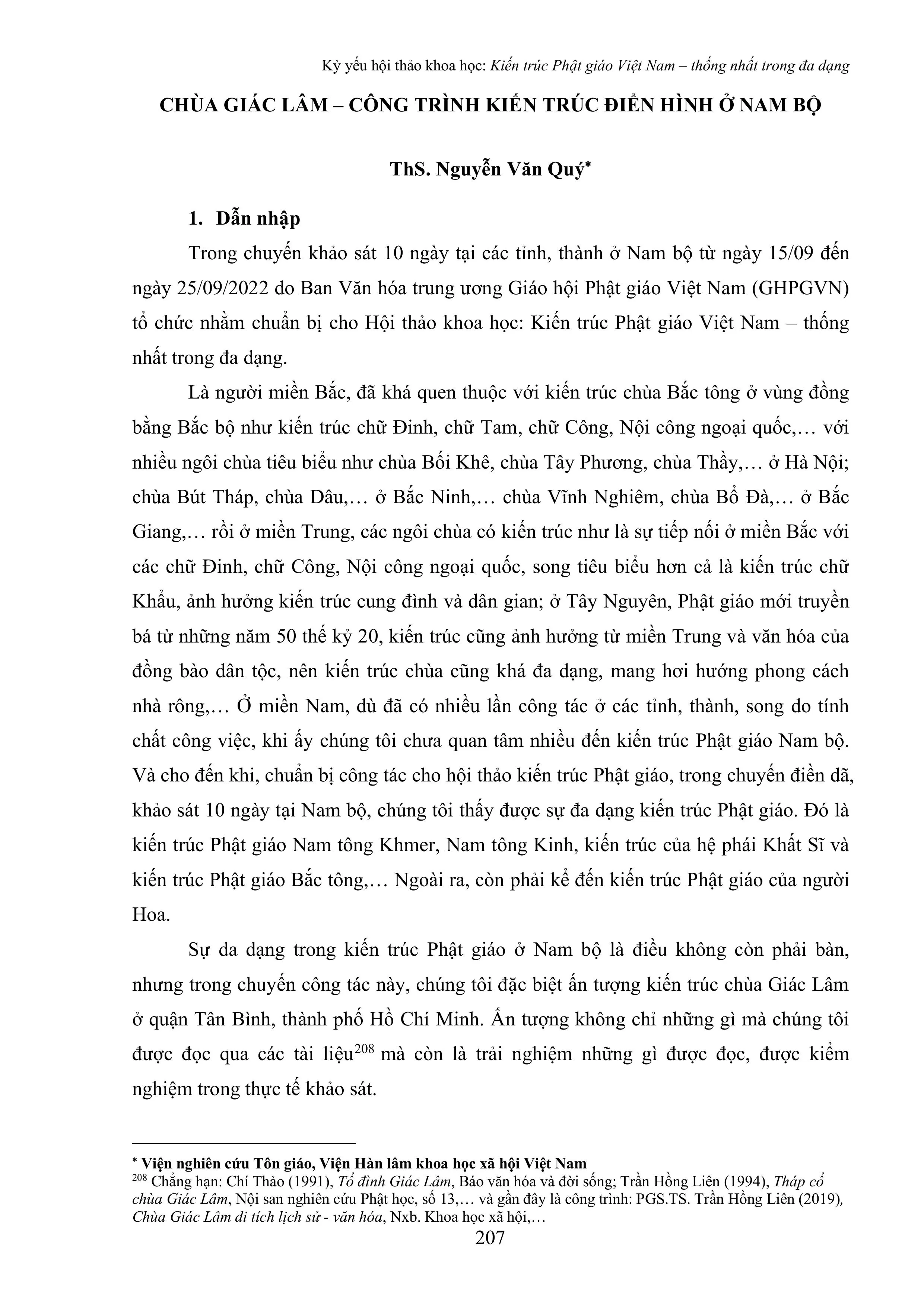 Nguồn: Kỷ yếu Hội thảo Khoa học Kiến trúc Phật giáo Việt Nam:"Thống nhất trong đa dạng"