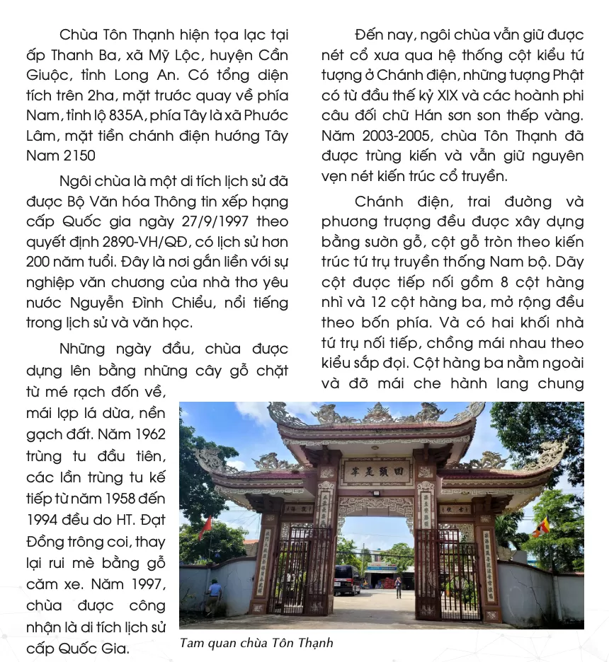 Chùa Tôn Thạnh - Nét đẹp cổ kính của Phật giáo Long An