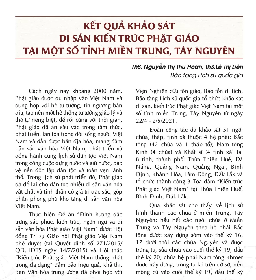 Kết quả khảo sát Di sản Kiến trúc Phật giáo tại một số tỉnh Miền Trung, Tây Nguyên