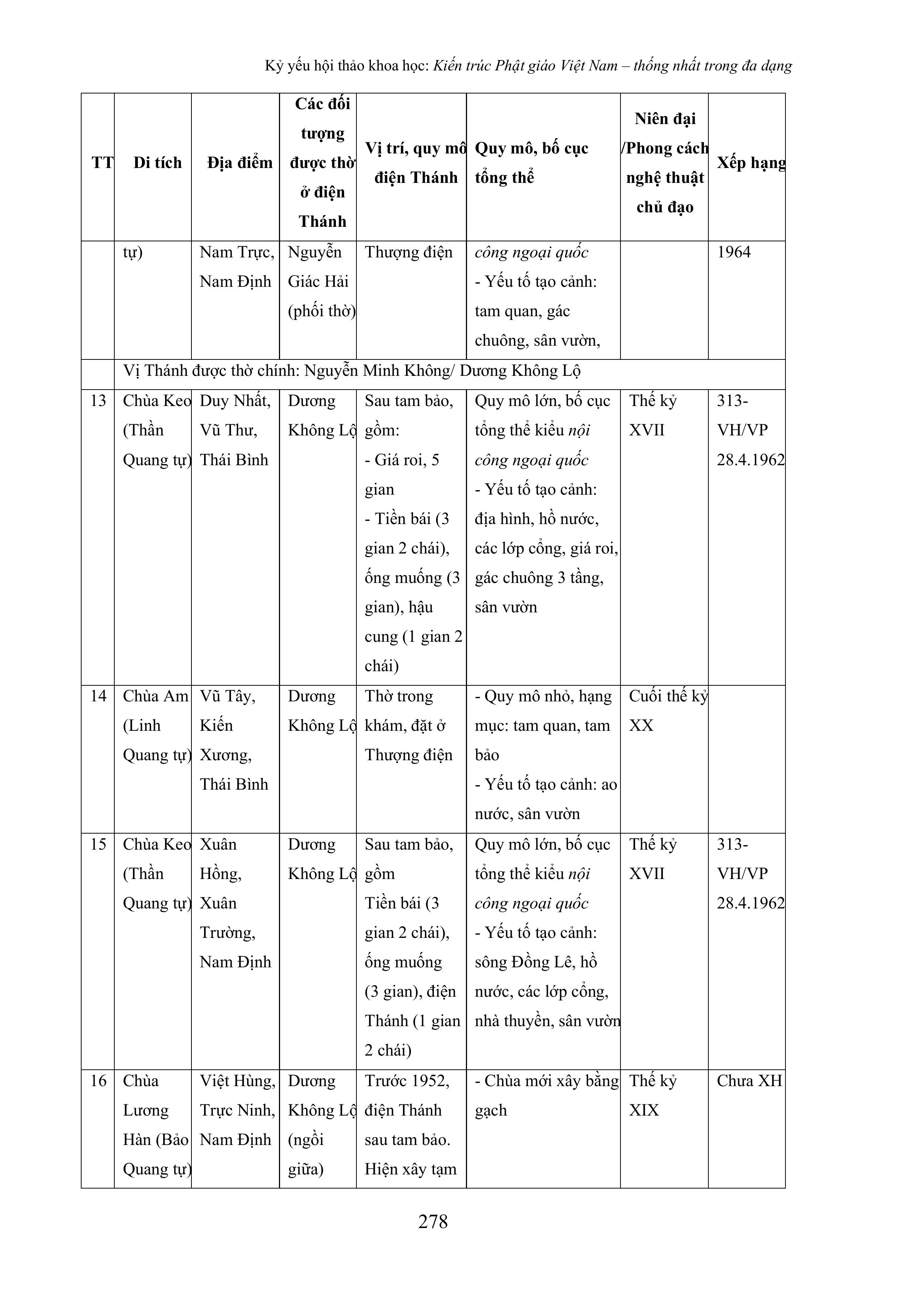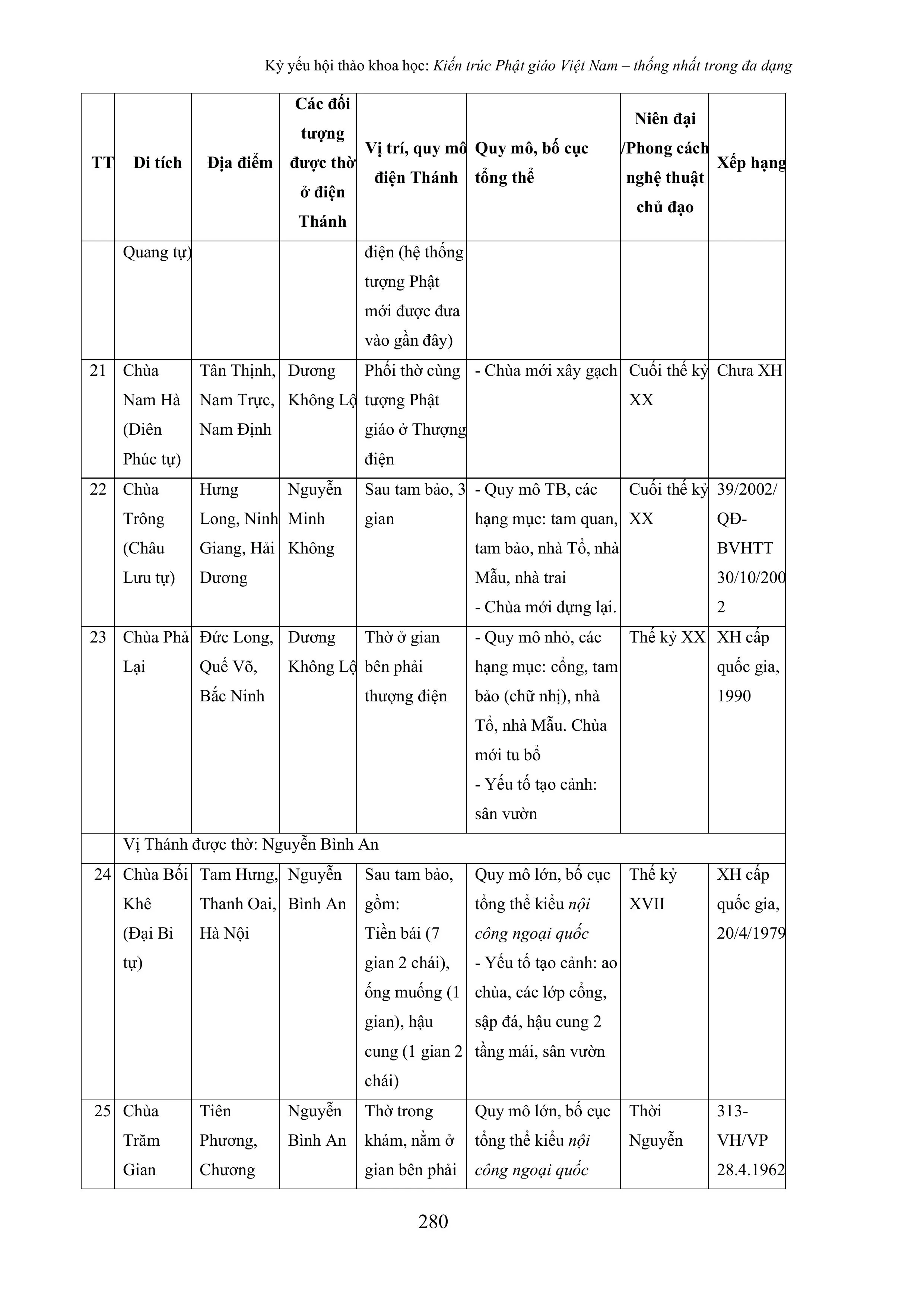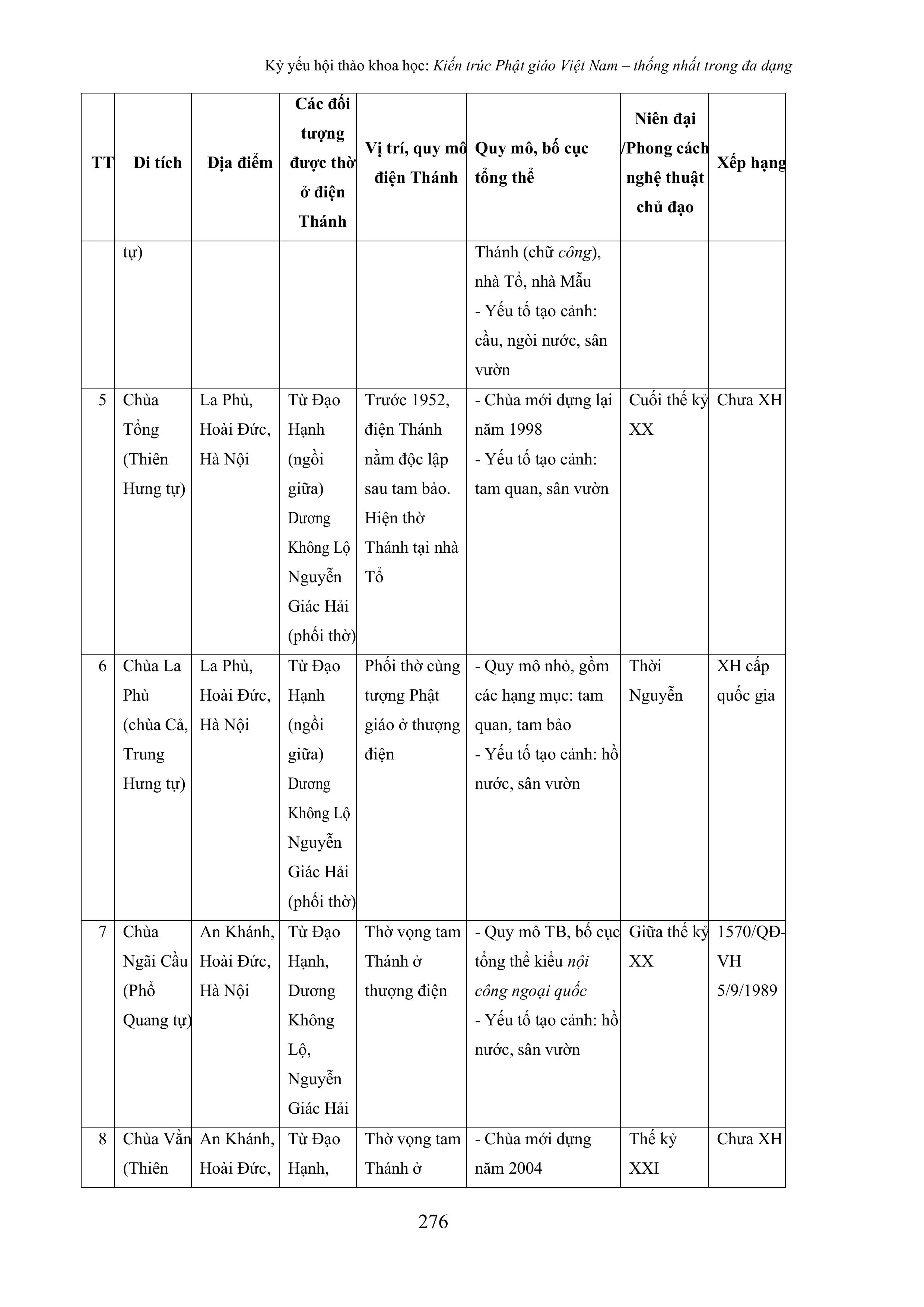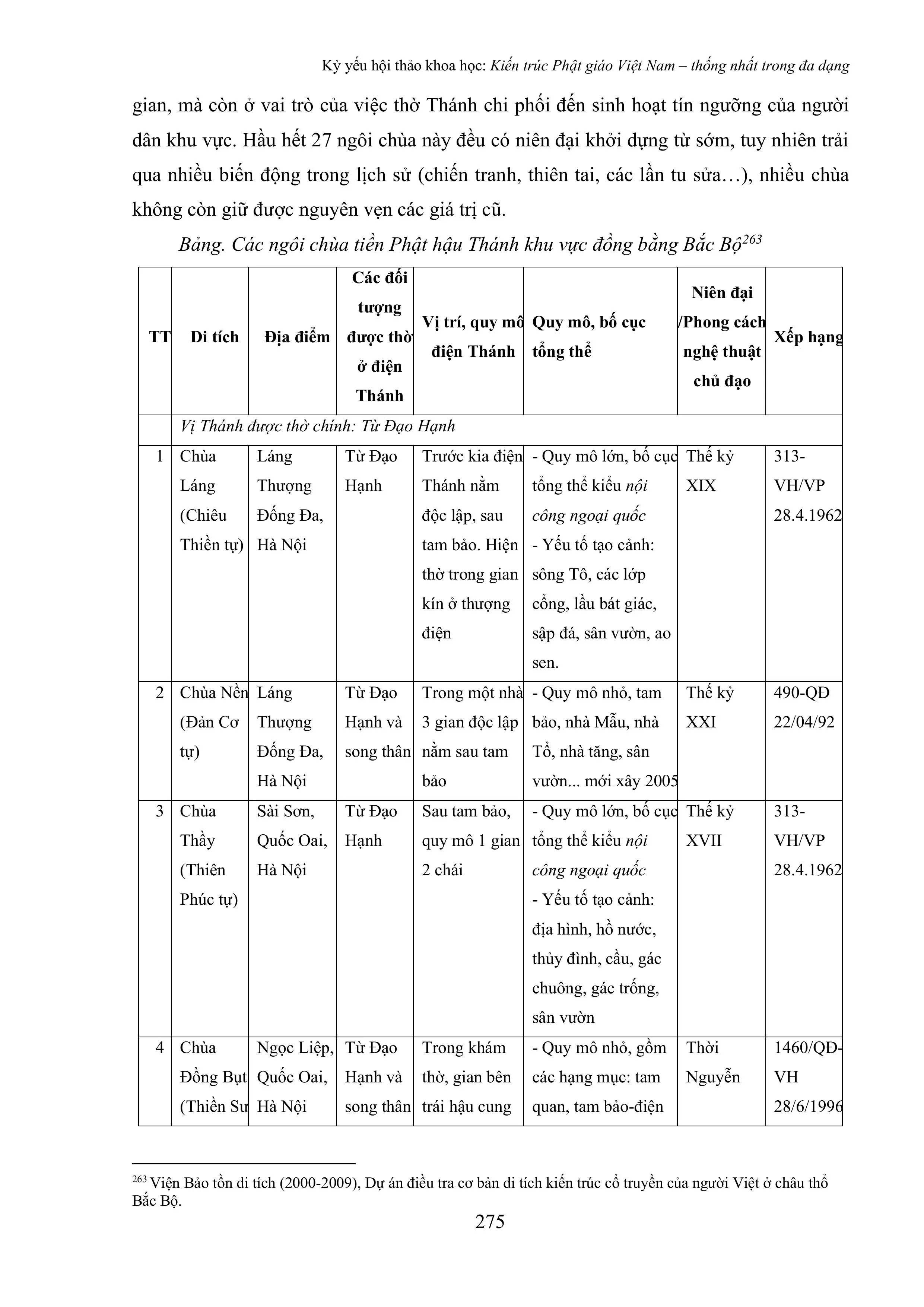Nguồn: Kỷ yếu Hội thảo Khoa học Kiến trúc Phật giáo Việt Nam:"Thống nhất trong đa dạng"