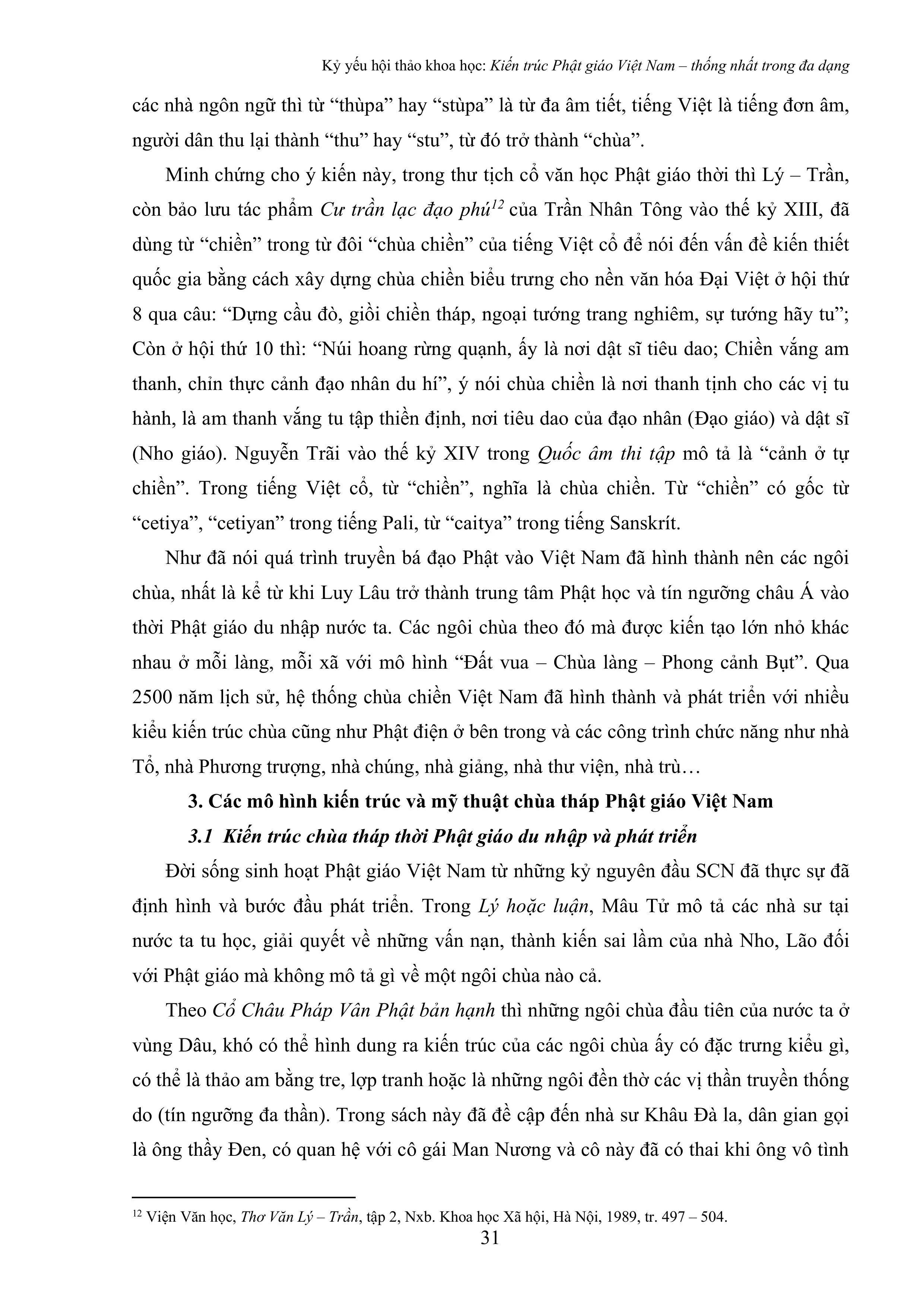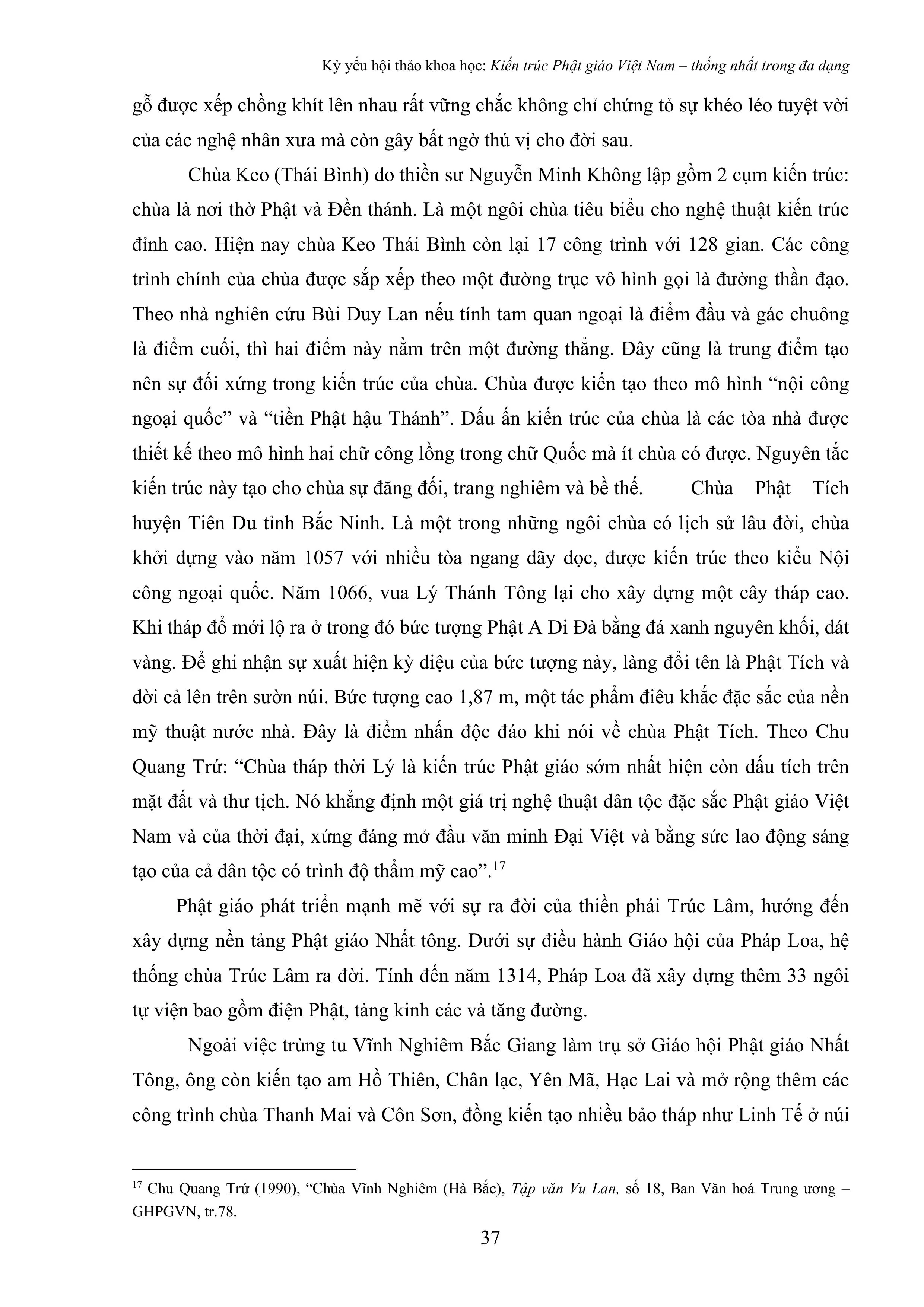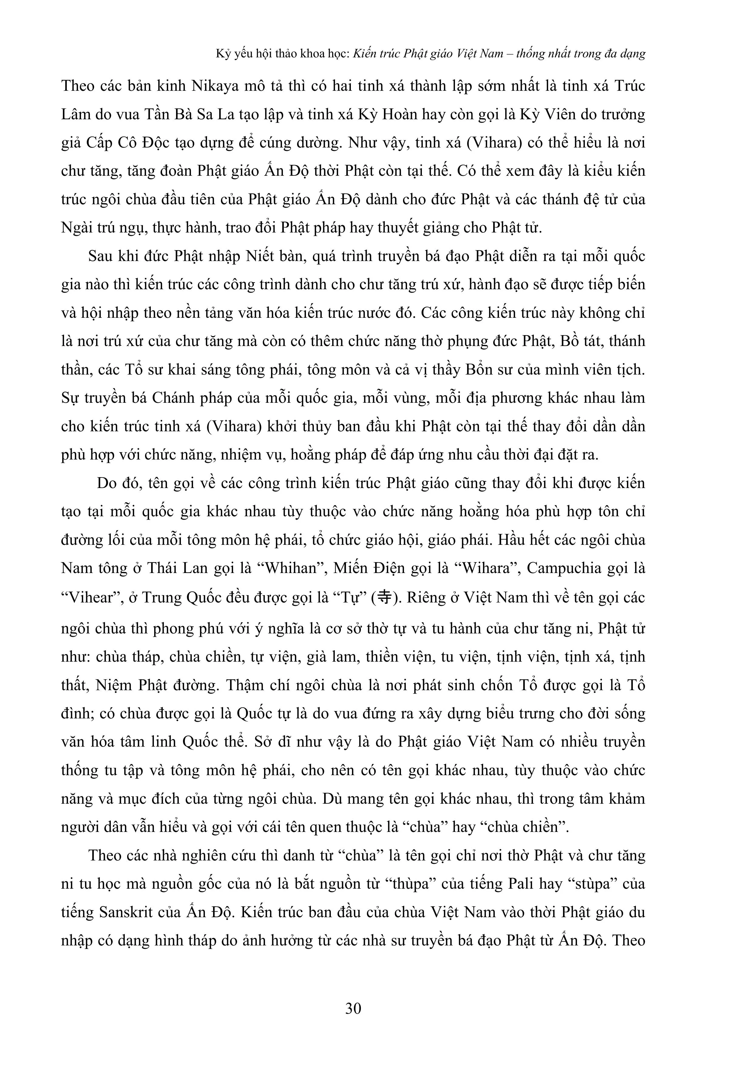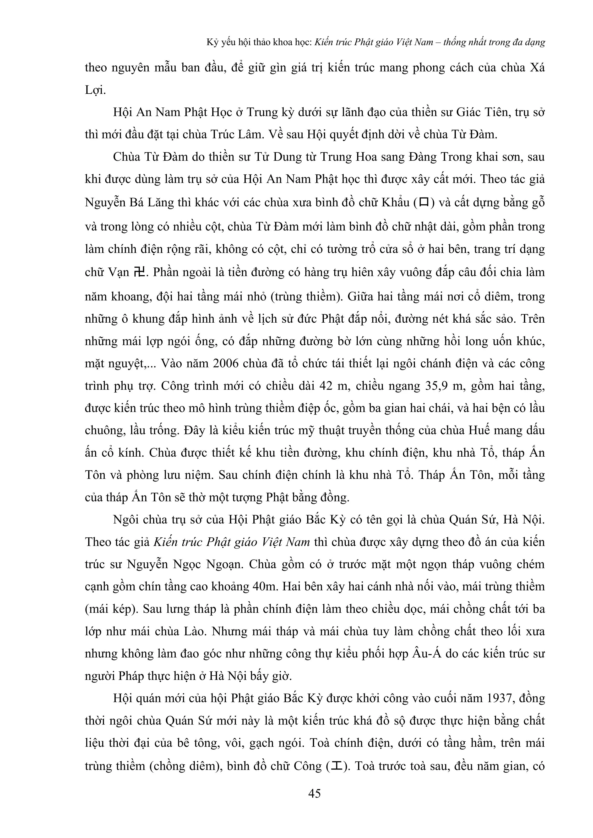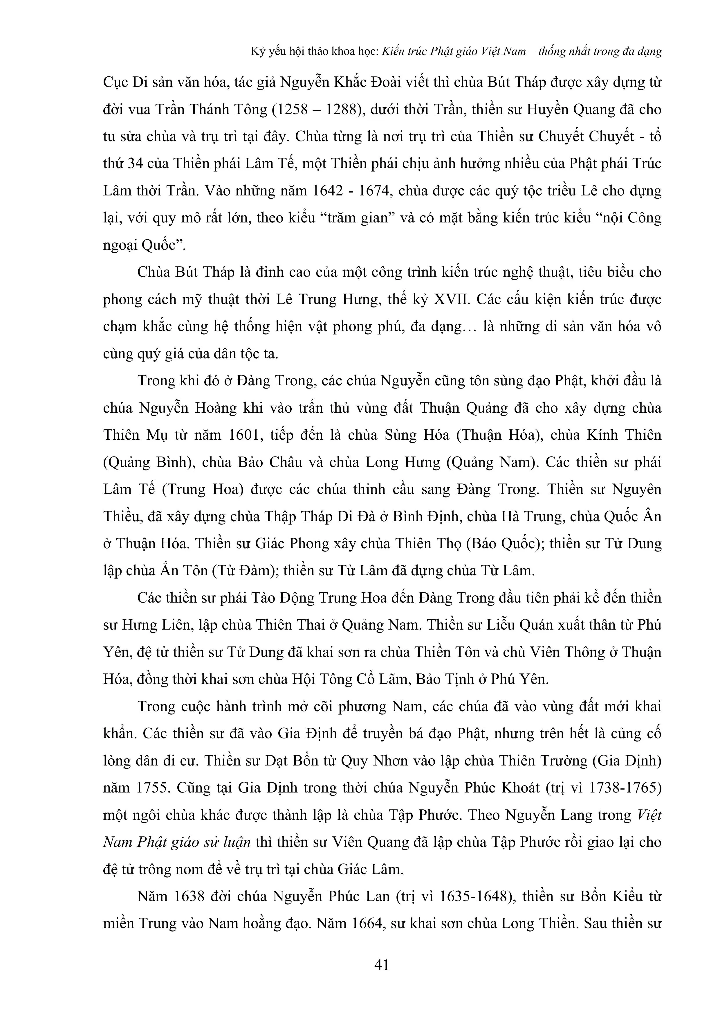 Nguồn: Kỷ yếu Hội thảo Khoa học Kiến trúc Phật giáo Việt Nam:"Thống nhất trong đa dạng"