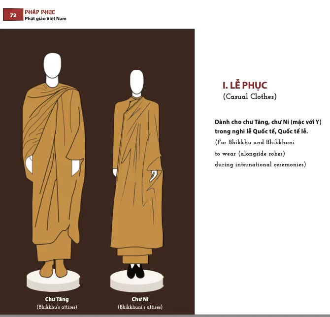 - Pháp phục Phật giáo Việt Nam: 1. Mẫu Pháp phục Phật giáo Bắc Tông - 1.1. Pháp phhục dành cho Tu sĩ - II. Lễ phục & III. Y Ca Sa