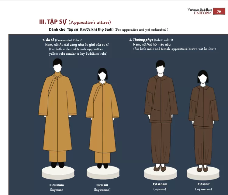 - Pháp phục Phật giáo Việt Nam: 1. Mẫu Pháp phục Phật giáo Bắc Tông - 1.1. Pháp phhục dành cho Tu sĩ - VI & VII. Thường phục