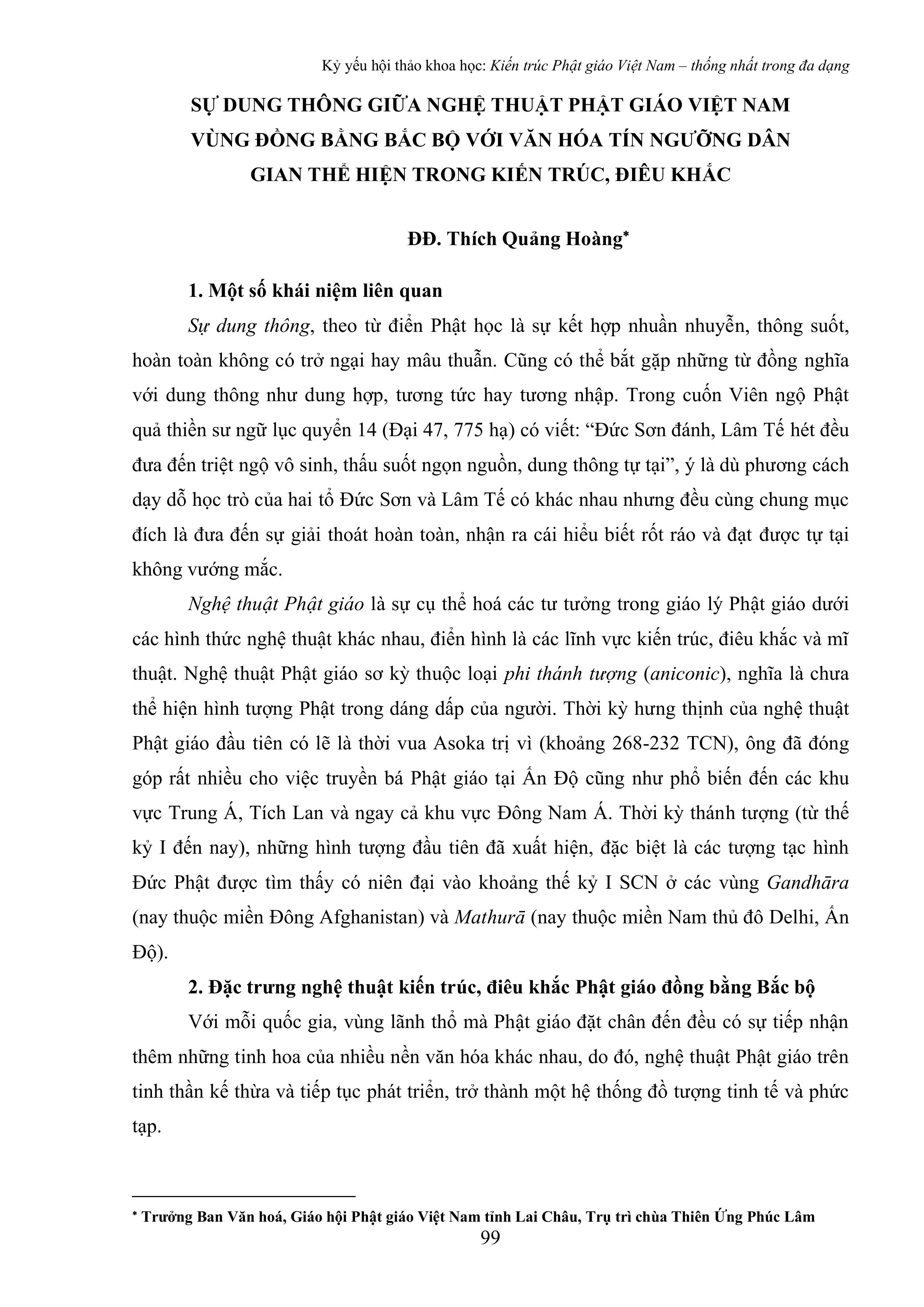 Sự dung thông giữa nghệ thuật Phật giáo Việt Nam vùng Đồng bằng Bắc Bộ với văn hoá tín ngưỡng dân gian thể hiện trong kiến trúc, điêu khắc