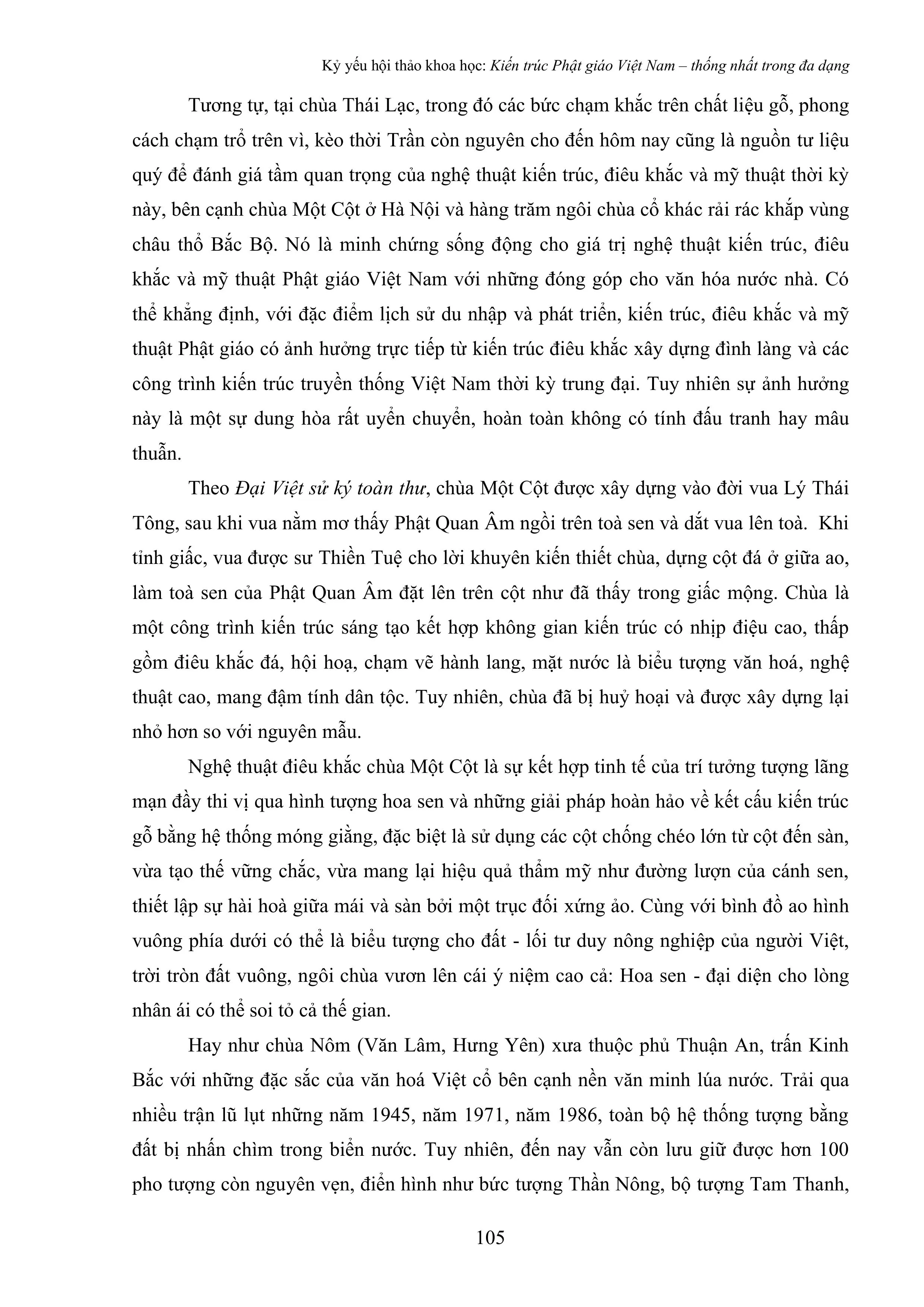Nguồn: Kỷ yếu Hội thảo Khoa học Kiến trúc Phật giáo Việt Nam:"Thống nhất trong đa dạng"