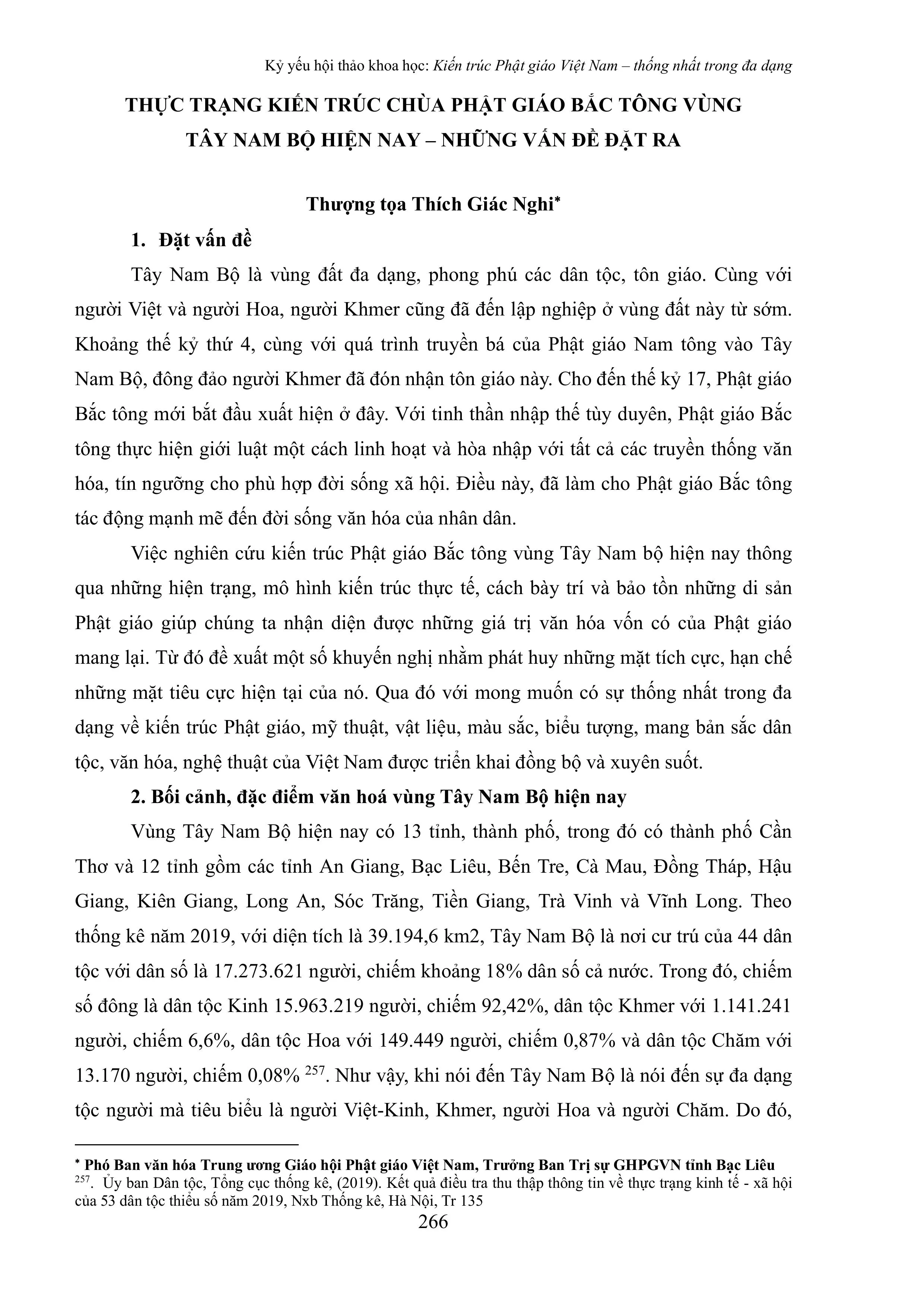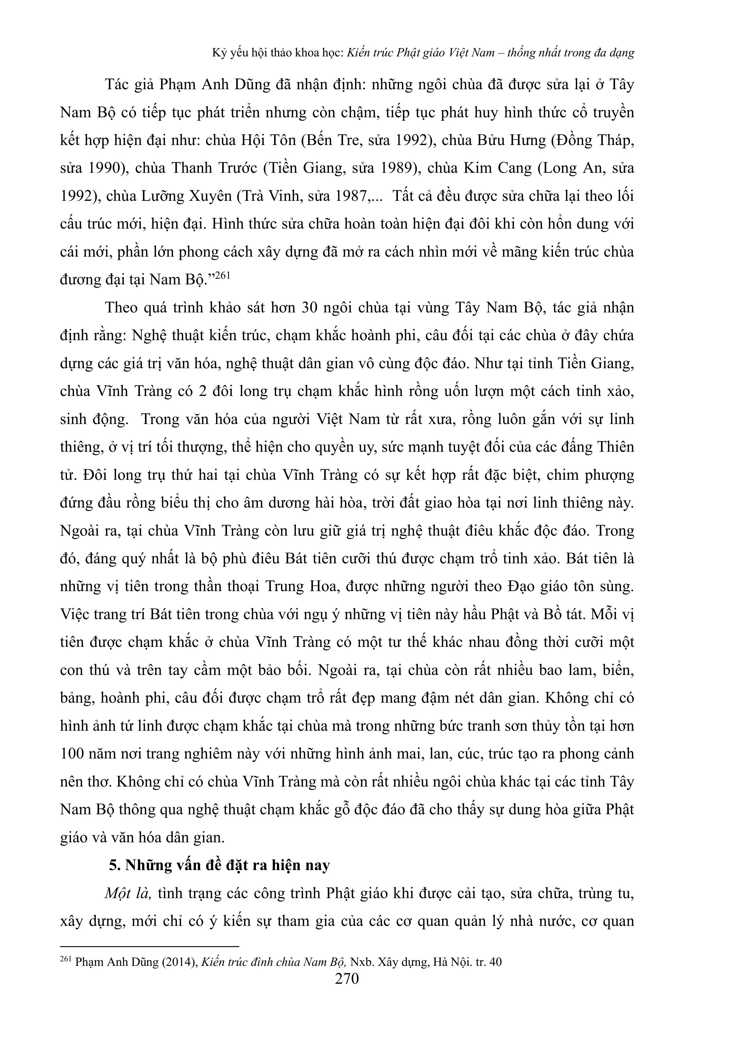 Thực trạng kiến trúc chùa Phật giáo Bắc tông vùng Tây Nam Bộ hiên nay - những vấn đề đặt ra