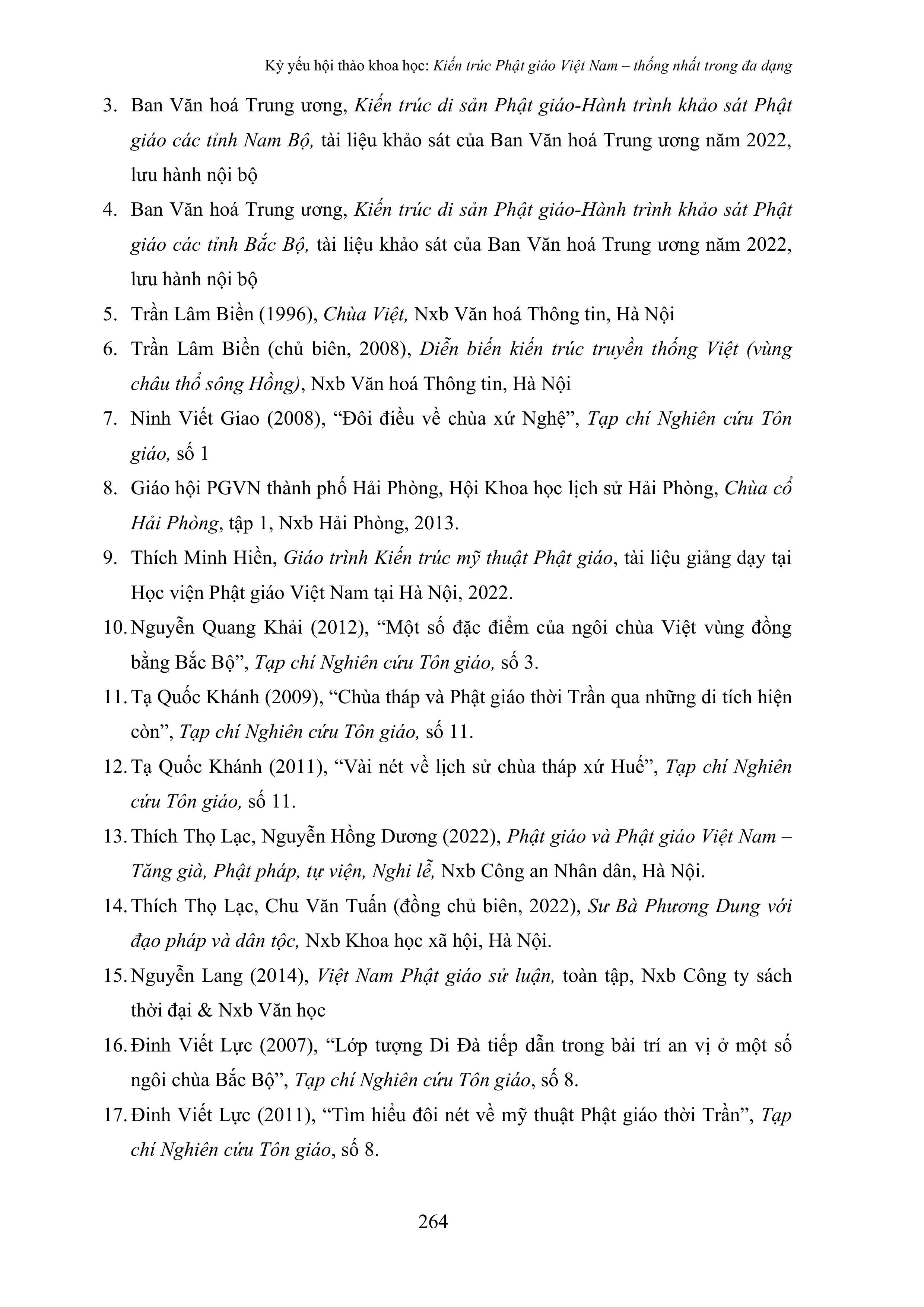 Nguồn: Kỷ yếu Hội thảo Khoa học Kiến trúc Phật giáo Việt Nam:"Thống nhất trong đa dạng"