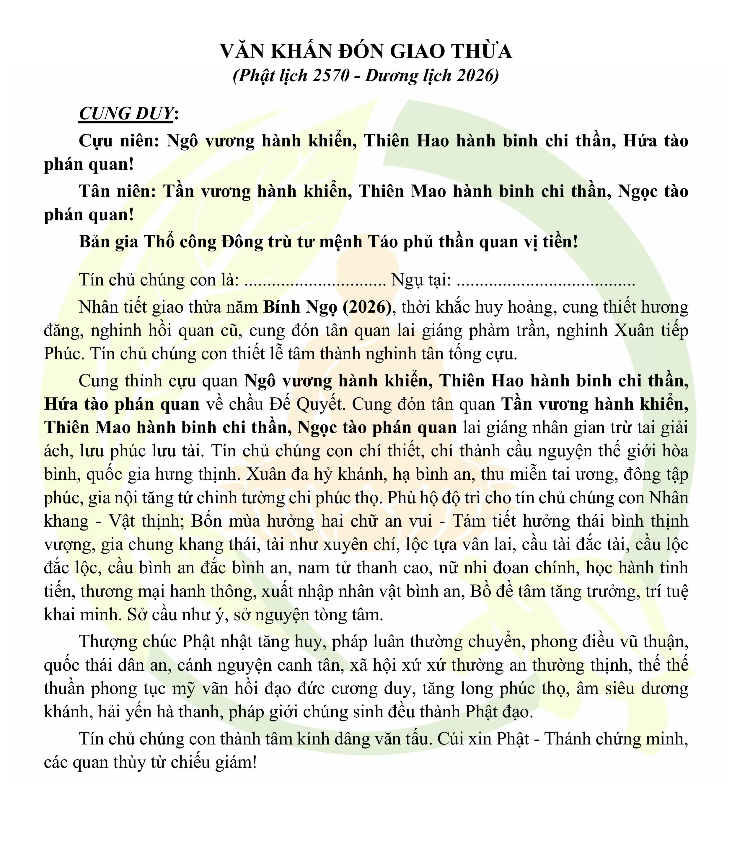 Văn khấn đón Giao thừa