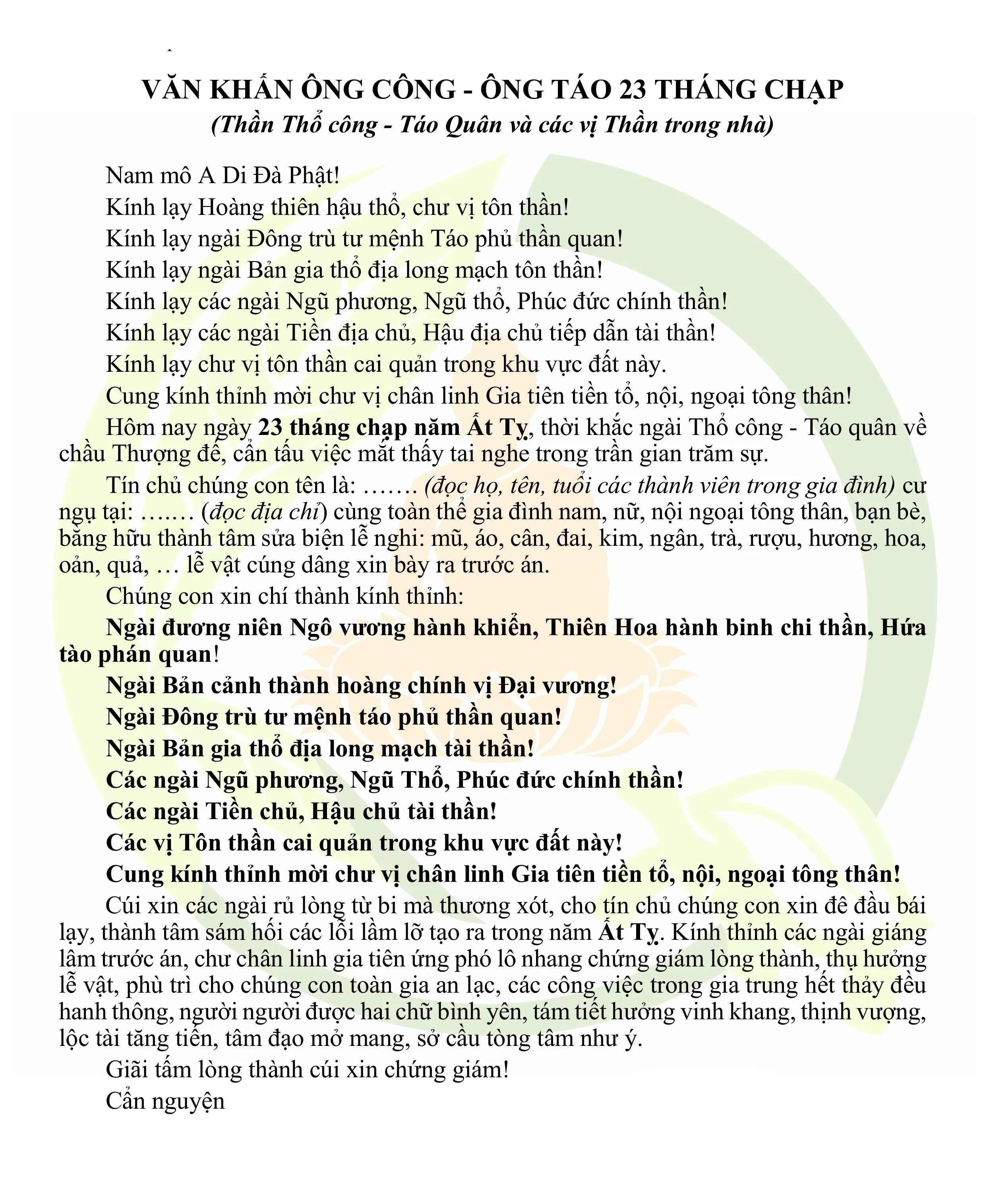 Văn khấn Ông Công - Ông Táo ngày 23 tháng Chạp