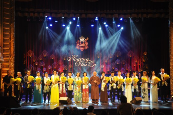 Tối qua, 18/9/2016 (18/8/Bính Thân), tại Nhà hát lớn thành phố Hà Nội đã diễn ra đêm nhạc Phật giáo chủ đề “ Hương Thu Ca” với các tác phẩm của nhạc sĩ Phật tử Tiến sĩ Cù Lệ Duyên (pháp danh Diệu Thiện) - giảng viên Học viện âm nhạc quốc gia Việt Nam.