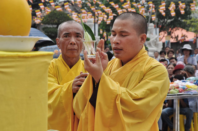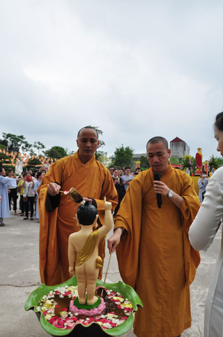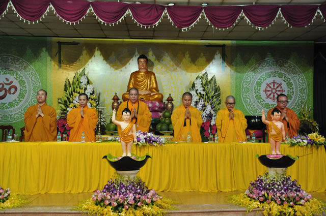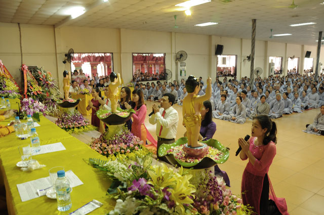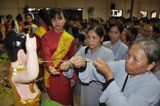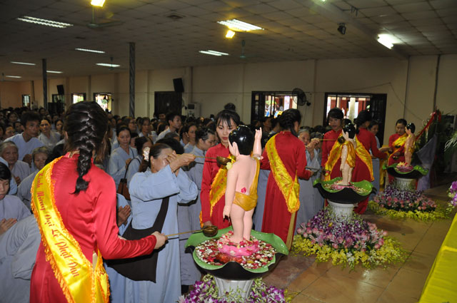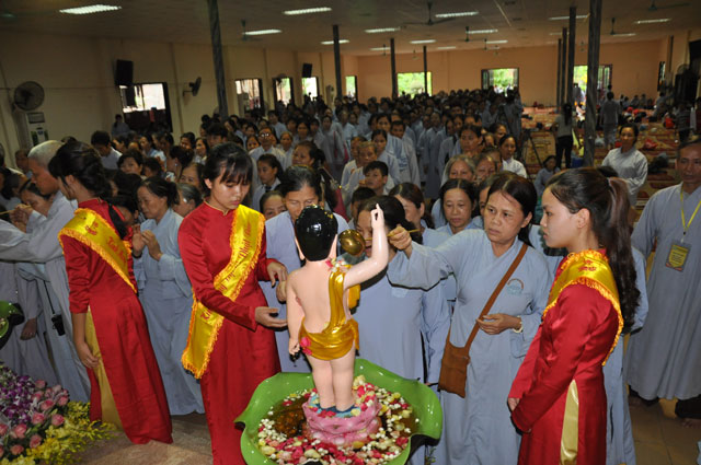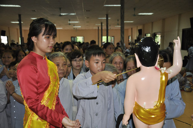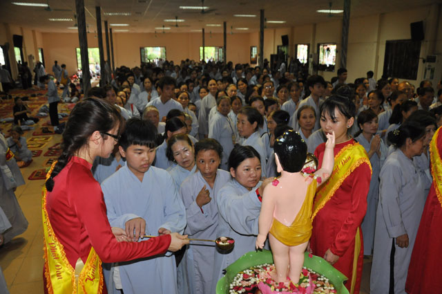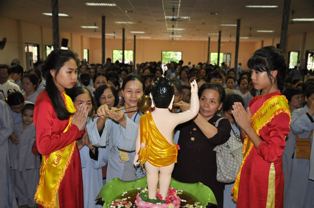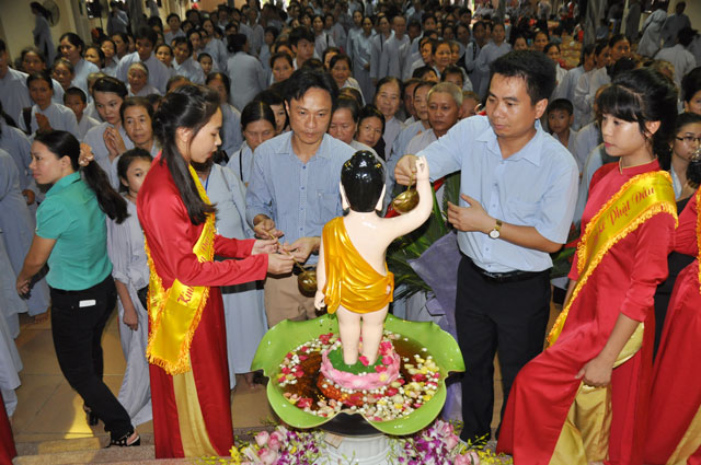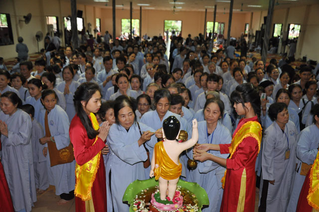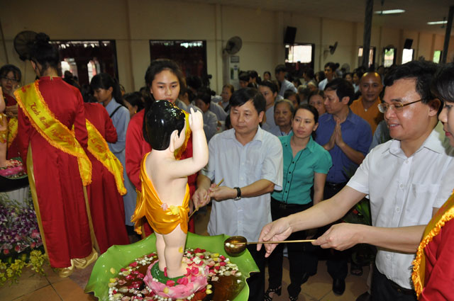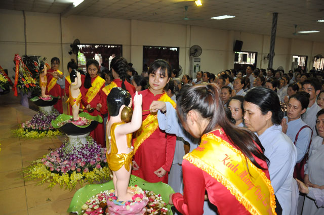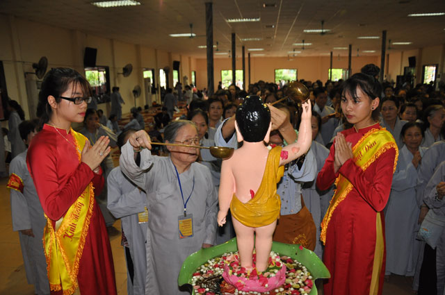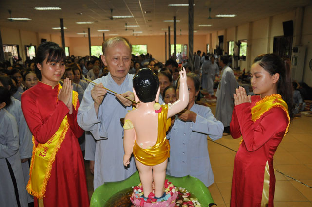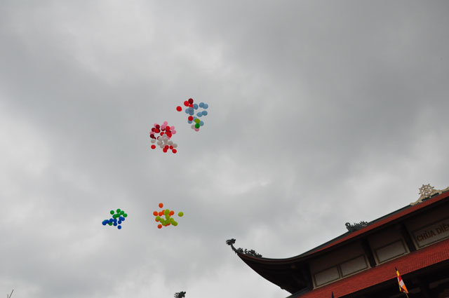Sau lời cảm tạ của BTC, chư Tôn đức cùng quý đại biểu thả chim bồ câu, bong bóng cầu nguyện hòa bình và tham gia nghi thức tắm Phật trong niềm hoan hỷ.
