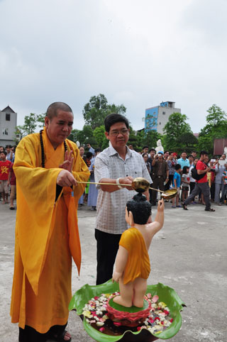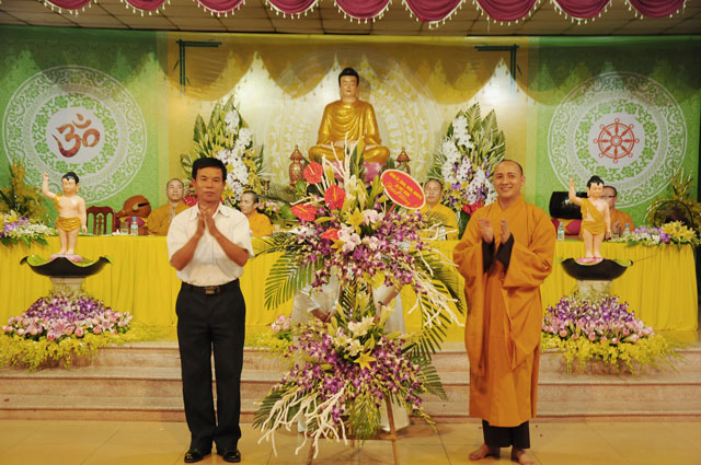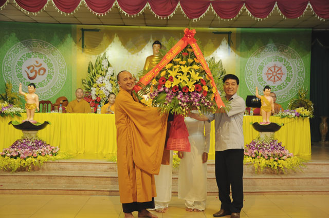 Cũng trong buổi lễ. ông Đinh Xuân Vịnh, Trưởng Ban Tôn Giáo tỉnh Bắc Ninh thay mặt cho lãnh đạo các cơ quan ban ngành, đoàn thể từ tỉnh đến địa phương phát biểu chúc mừng. Đồng thời ghi nhận và biểu dương những nỗ lực đóng góp quan trọng của Tăng, Ni, Phật tử tỉnh nhà và mong rằng đồng bào Phật tử phát huy hơn nữa sức mạnh đoàn kết toàn dân tộc, thực hiện đúng tôn chỉ, mục đích, phương châm của GHPGVN - “Đạo pháp - Dân tộc - Chủ nghĩa xã hội”, chung tay, góp sức nhiều hơn nữa vào những hoạt động ích nước, lợi dân góp phần phát triển quê hương Bắc Ninh ngày càng giàu mạnh.