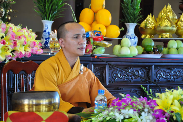 Tiếp theo, ĐĐ. Thích Thanh Hưng đọc về ý nghĩa Phật Đản của HT. Thích Bảo Nghiêm, Phó Chủ tịch HĐTS kiêm Trưởng Ban Hoằng Pháp GHPGVN. Qua bài ý nghĩa đã khẳng định Phật giáo luôn gắn bó và đồng hành cùng dân tộc “Phật giáo Việt Nam luôn nhận thức sâu sắc sự thịnh suy của Phật giáo liên quan mật thiết đến sự tồn vong của dân tộc. Do đó là người con Phật, chúng ta phải sống có trách nhiệm với cộng đồng xã hội, lấy lý tưởng vô ngã và tinh thần hòa hợp làm nòng cốt cho mọi hoạt động Phật sự, đồng lòng chung sức góp phần cho sự nghiệp phát triển phồn vinh của đạo pháp và dân tộc”.