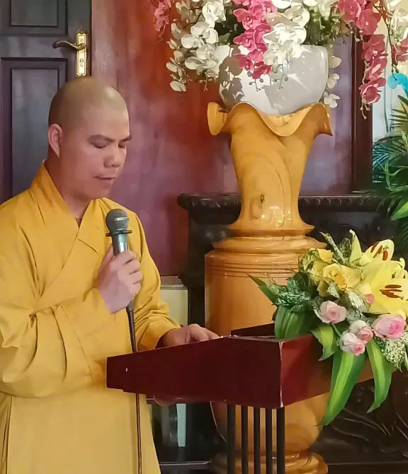 Đại đức Thích Minh Thuần - Chánh Thư ký BVH TƯ trình bày phương hướng hoạt động của BVH TƯ trong năm 2026 với các nội dung: