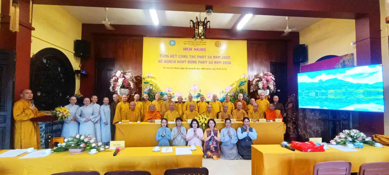 TP.HM - Lúc 14 giờ 00, ngày 20 tháng 01 năm 2026 (nhằm ngày 02 tháng 12 năm Ất Tỵ), tại Văn phòng Thường trực Ban Văn hóa Trung ương, chùa Pháp Hoa, số 870 Trường Sa, phường Nhiêu Lộc, TP. Hồ Chí Minh; Trong tinh thần phụng sự Đạo pháp – Dân tộc – Chủ nghĩa xã hội, Ban Văn hóa Trung ương Giáo hội Phật giáo Việt Nam long trọng tổ chức Hội nghị Tổng kết công tác Phật sự năm 2025 và triển khai Kế hoạch hoạt động Phật sự năm 2026, nhằm đánh giá những thành tựu đã đạt được và đề ra phương hướng hoạt động trong thời gian tới.