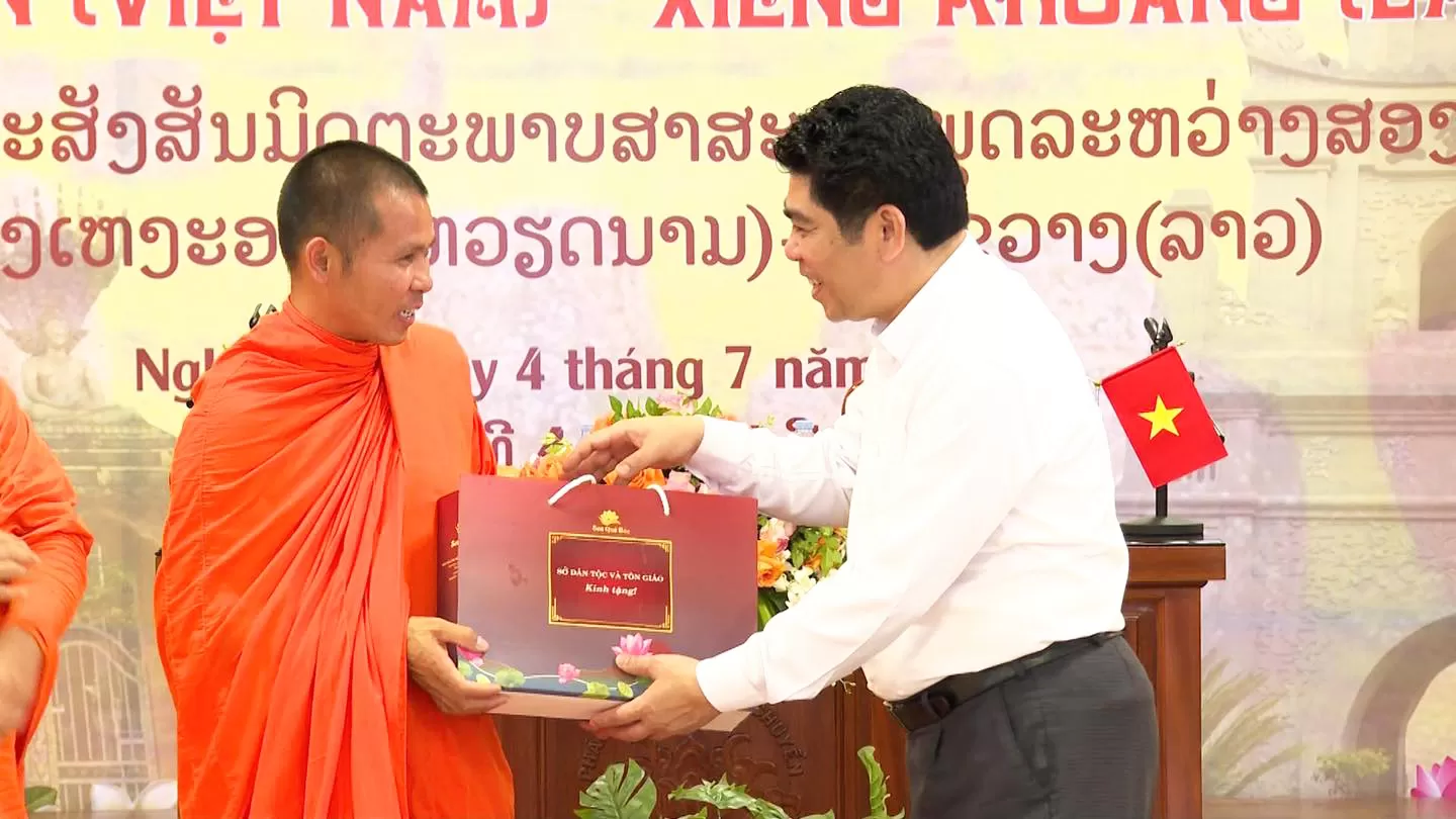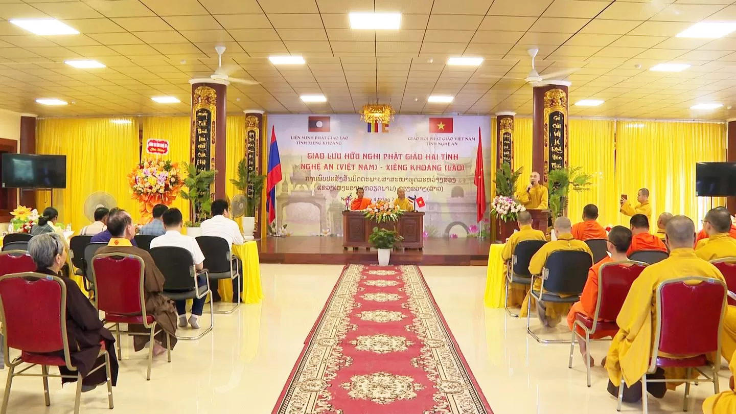 Đồng thời, trong khuôn khổ chương trình giao lưu Phật giáo giữa tỉnh Nghệ An (Việt Nam) và tỉnh Xiêng Khoảng (Lào), đoàn đại biểu Phật giáo hai nước đã trang nghiêm tổ chức lễ tưởng niệm tại Nghĩa trang Liệt sĩ, huyện Anh Sơn, tỉnh Nghệ An. Các đại biểu đã thành kính thực hiện nghi lễ dâng hương, đặt vòng hoa, dành phút mặc niệm tưởng nhớ công ơn của các anh hùng liệt sĩ đã hy sinh trong sự nghiệp đấu tranh giải phóng dân tộc và vun đắp tình hữu nghị đặc biệt Việt – Lào.