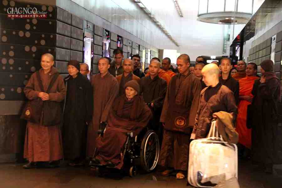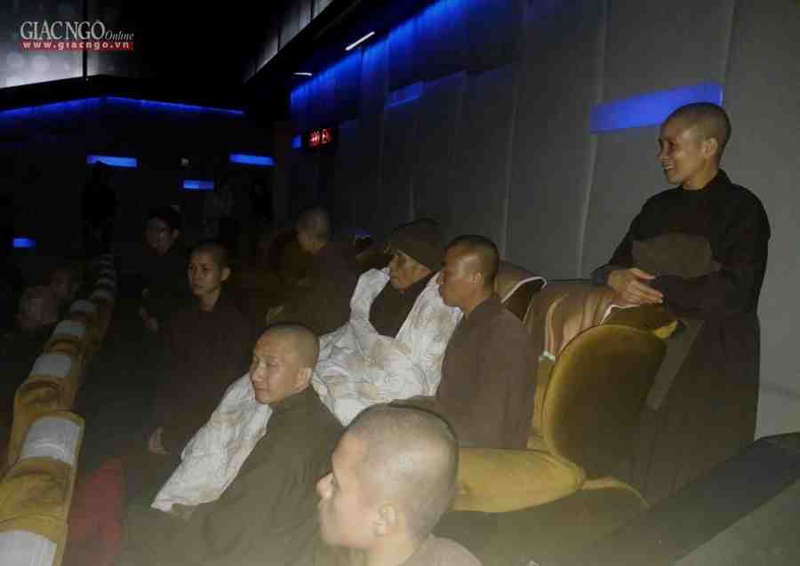 Thiền sư được quý Thầy và quý Sư cô cùng chư Tăng Thái Lan tháp tùng đến buổi công chiếu