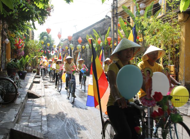 Sáng ngày mồng 9 tháng 4 năm Bính Thân (15/5/2016), BTS PG thành phố Hội An tổ chức diễu hành xe đạp chào mừng đại lễ Phật đản PL.2560 – DL.2016 quanh các tuyến đường chính tại phố cổ Hội An, tỉnh Quảng Nam.