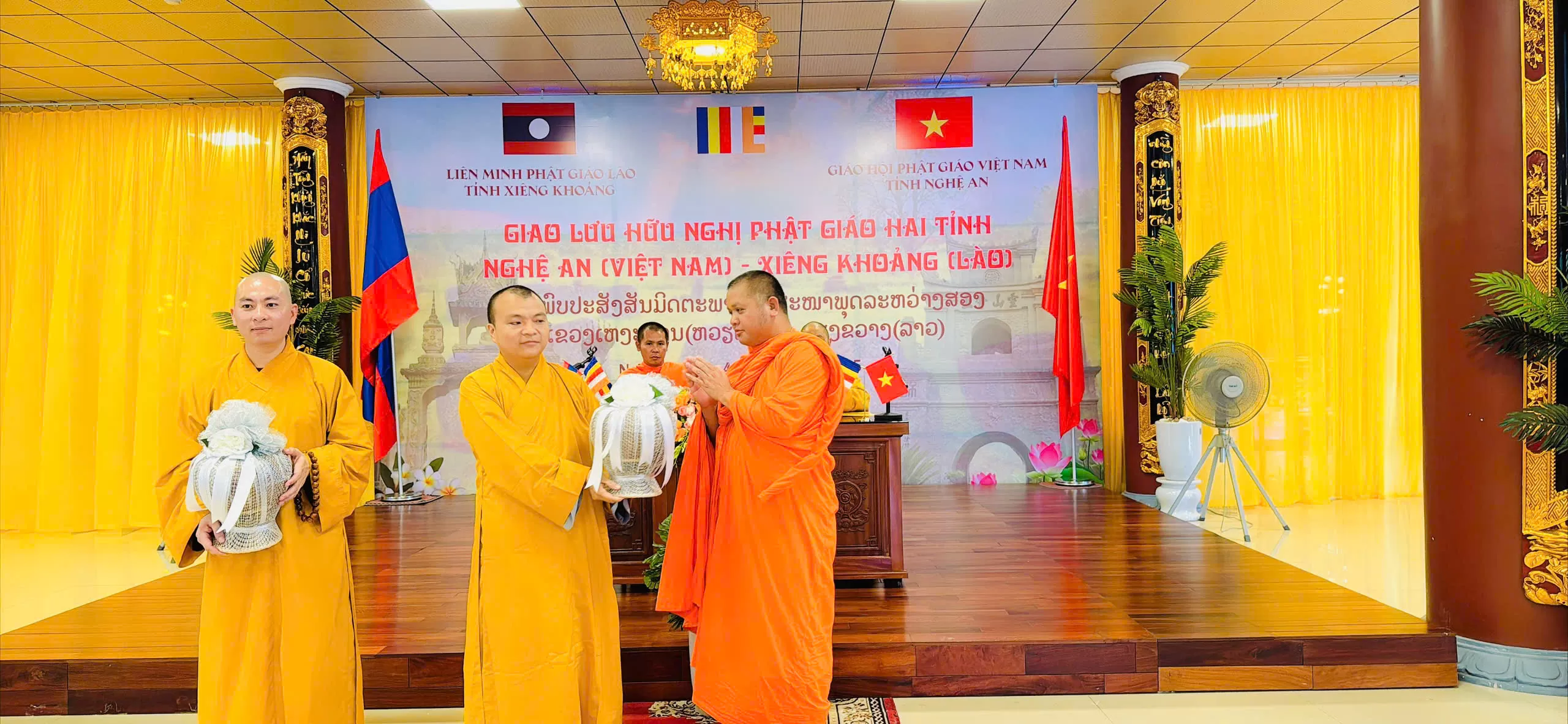 Trong dòng chảy hữu nghị ấy, Phật giáo – với tư cách là một tôn giáo có vai trò lớn trong đời sống tinh thần của nhân dân hai nước, cũng đã không ngừng tăng cường giao lưu, chia sẻ, tương trợ lẫn nhau. Những buổi gặp gỡ, những chương trình giao lưu văn hóa, giáo lý, hoằng pháp, hay sự phối hợp trong các hoạt động từ thiện xã hội,… chính là cầu nối tâm linh bền vững giữa Phật giáo 02 nước. Phật giáo tỉnh Xiêng Khoảng và Phật giáo tỉnh Nghệ An có nhiều điểm tương đồng: đều là nơi có bề dày lịch sử, có truyền thống tu học, hoằng pháp lâu đời, có sự hiện diện đông đảo của Chư Tăng và Phật tử thuần thành. Đặc biệt là hai tỉnh cùng nằm trên tuyến biên giới, cùng chung mạch nguồn văn hóa, phong tục, tín ngưỡng. Những điểm tương đồng đó càng làm cho sự gắn kết giữa hai tổ chức Phật giáo trở nên thân thiết, gần gũi và thiêng liêng.
