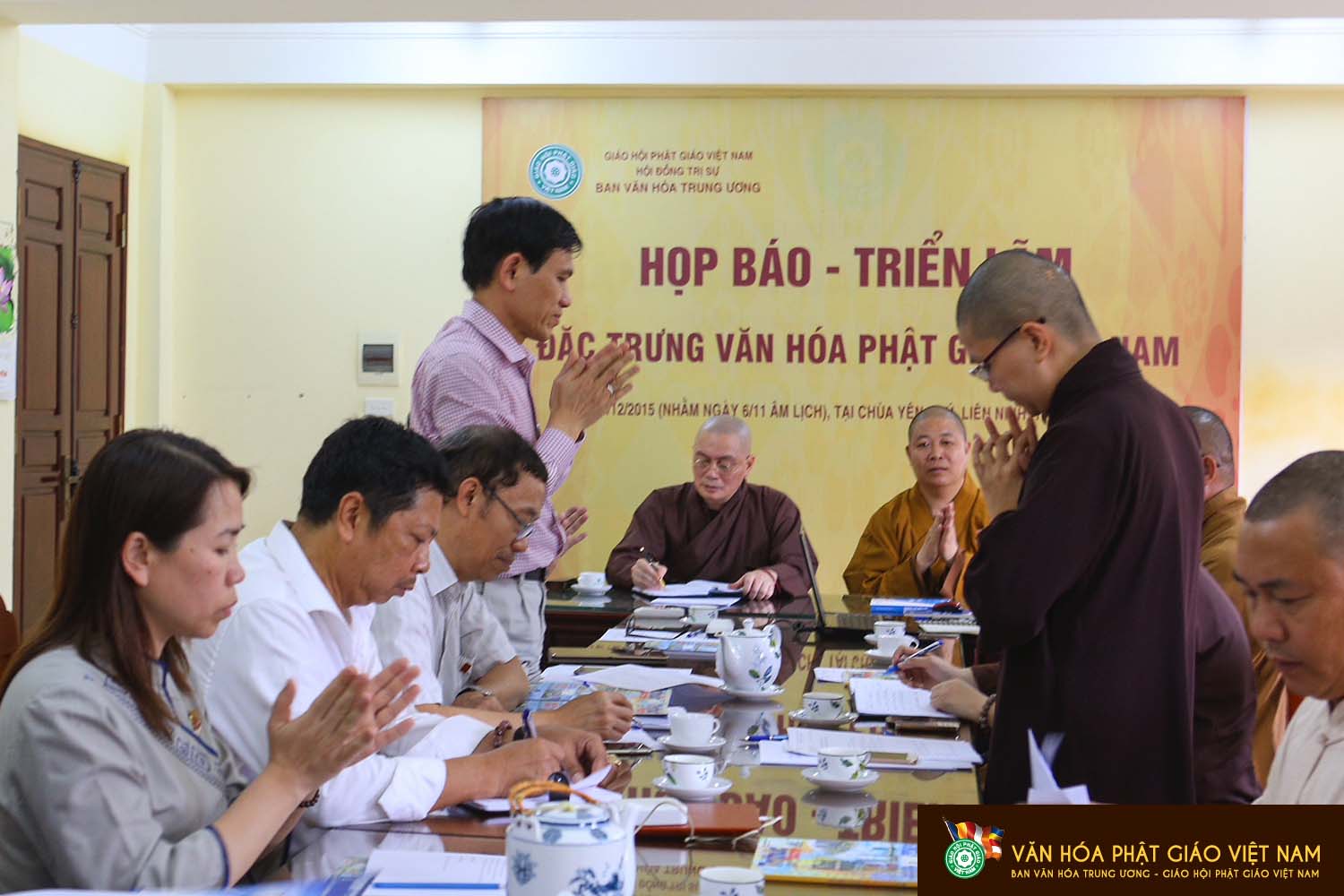Đầu giờ chiều ngày 23/5/2016 VP1 Ban Văn Hóa TWGHPGVN,tổ chức họp triển khai công tác lễ kỷ niệm và triển lãm 35 ,thành lập GHPGVN,tại VP thường trực Chùa Yên Phú,Liên ninh Thanh Trì Hà Nội.Đây là một trương trình hoạt động lớn của Ban Văn Hóa TWGHPGVN trong năm 2016,được sự chỉ đạo của TWGHPGVN,chào mừng 35 năm thành lập GHPGVN,thực hiện bốn Đề án lớn của Ban Văn Hóa,hướng tới Đại hội Phật Giáo toàn quốc lần VIII-2017.Chủ trì buổi họp có Thượng tọa Thích Thọ Lạc,phó thường trực Ban văn Hóa TWGHPGVN,Thượng Tọa Thích Minh Hiền,Phó BVHTWGHPGVN.Cùng đại diện Tăng Ni,Cư sĩ Phật tử VP1 BVH và PV có mặt tham dự buổi họp.Khách mời tham dự chương trình có TS Nguyễn Quốc Tuấn ,Viện trưởng Viện nghiên cứu Tôn Giáo-Viện hàn lâm Khoa học Việt Nam,Phó GS-TS Mai xuân Huy,phó Viện trưởng,Viện ngôn ngữ học,Viện HLKHVN, KTS Lê Thành Vinh ,Viện trưởng Viện bảo tồn Di tích,Bộ VHTT và DL.Sau nghi lễ truyền thống,TT Thích Thọ Lạc phát biểu nêu ra những kế hoạch,phương án để thực hiện chào mừng ngày Đại lễ.Lần lượt Thượng tọa Thích Minh hiền và các GS TS tham dự,cho những ý kiến đóng góp xây dựng những bài tham luận và hoạt động của ngày Lễ trọng đại này.Thời gian và địa điểm tổ chức đã được thống nhất từ ngày 2-3/7/2016 ( AL 28-29-5 ).Tại Chùa Yên Phú ,Liên Ninh thanh Trì Hà nội.Trong dịp tổ chức Lễ kỷ niệm Triển lãm và Hội thảo mừng 35 thống nhất GHPGVN,Trong dịp lễ này,Chùa Yên Phú cung thỉnh,rước Pho Ngọc Phật Hòa Bình Thế Giới về triển lãm tại Chùa,góp thêm phần sinh động trang nghiêm cho ngày lễ,từ ngày 1 đén ngày 17/7/2016.Đây là lần triển lãm cuối cùng của Pho Ngọc Phật hòa Bình Thế Giới ,sau triển lãm lần này sẽ chuyển về Úc,Tượng sẽ được Yên vị nhập Tháp.
