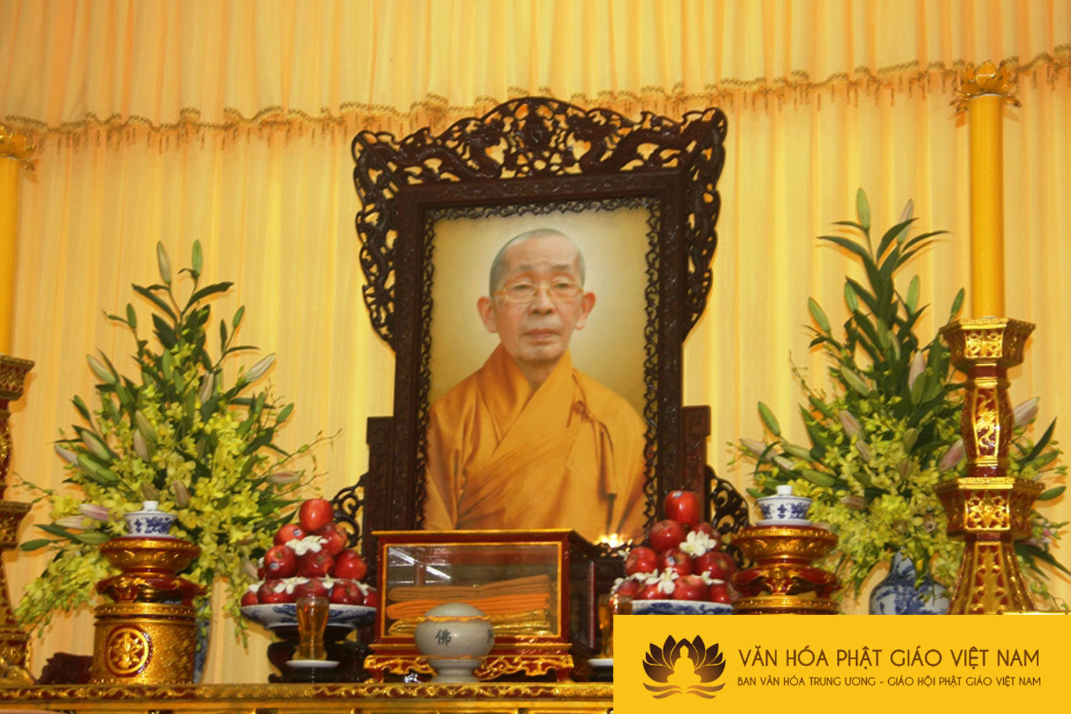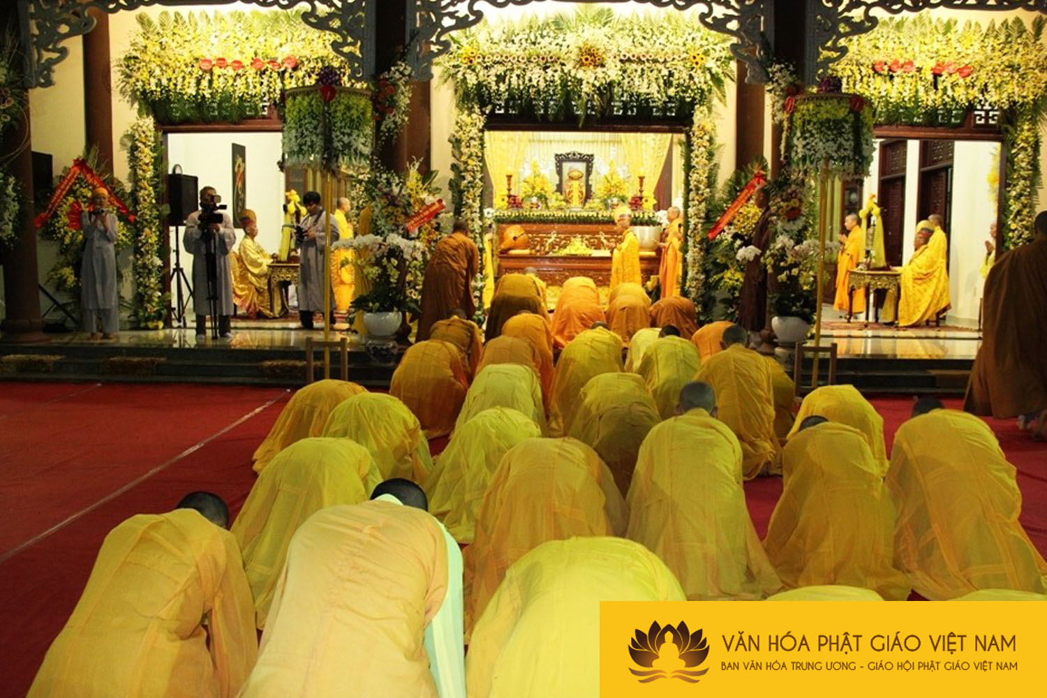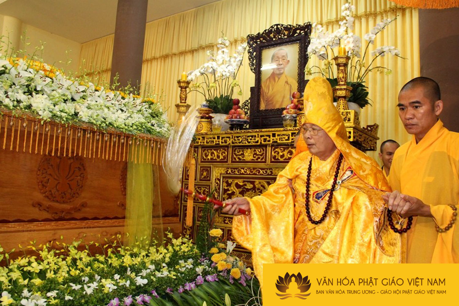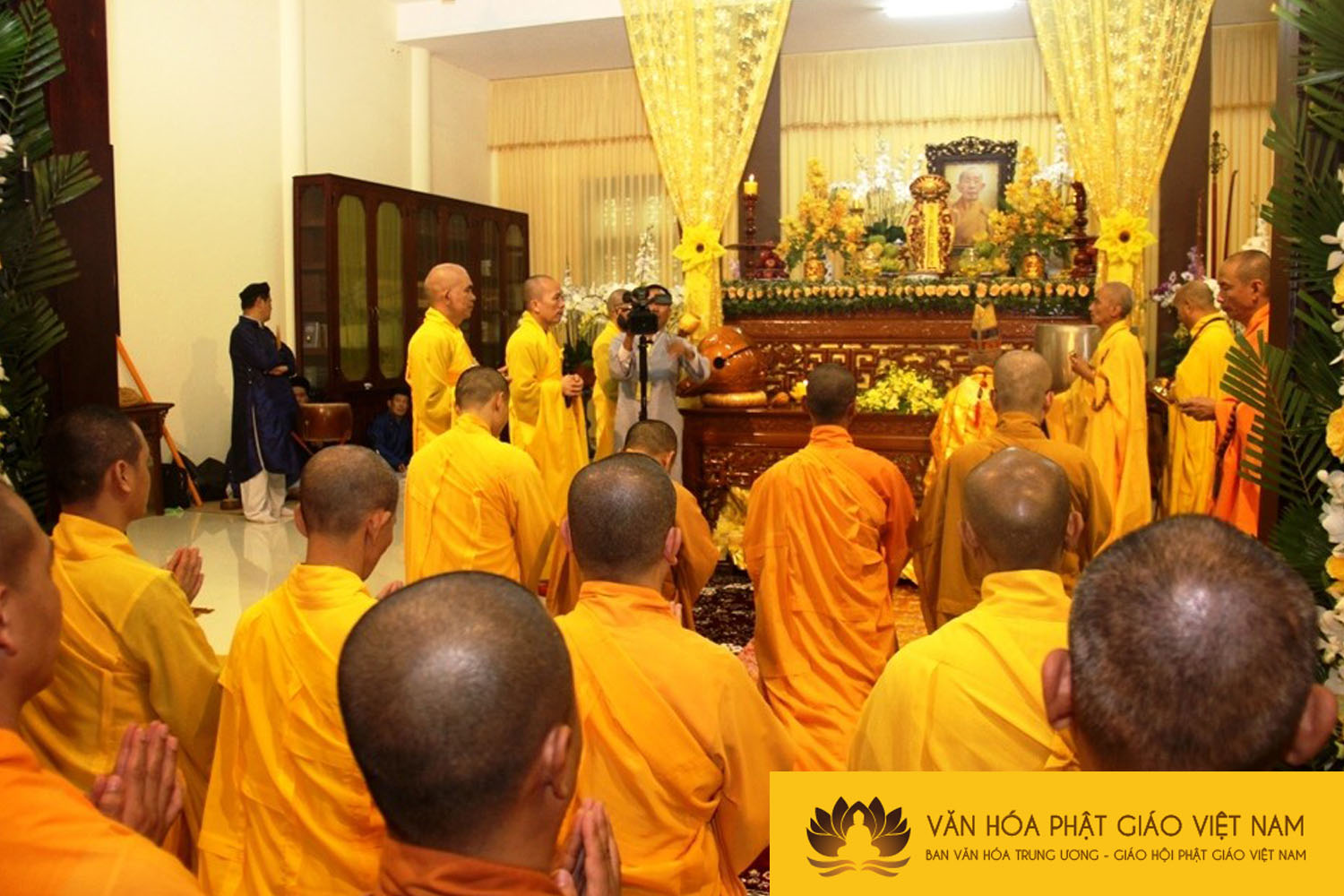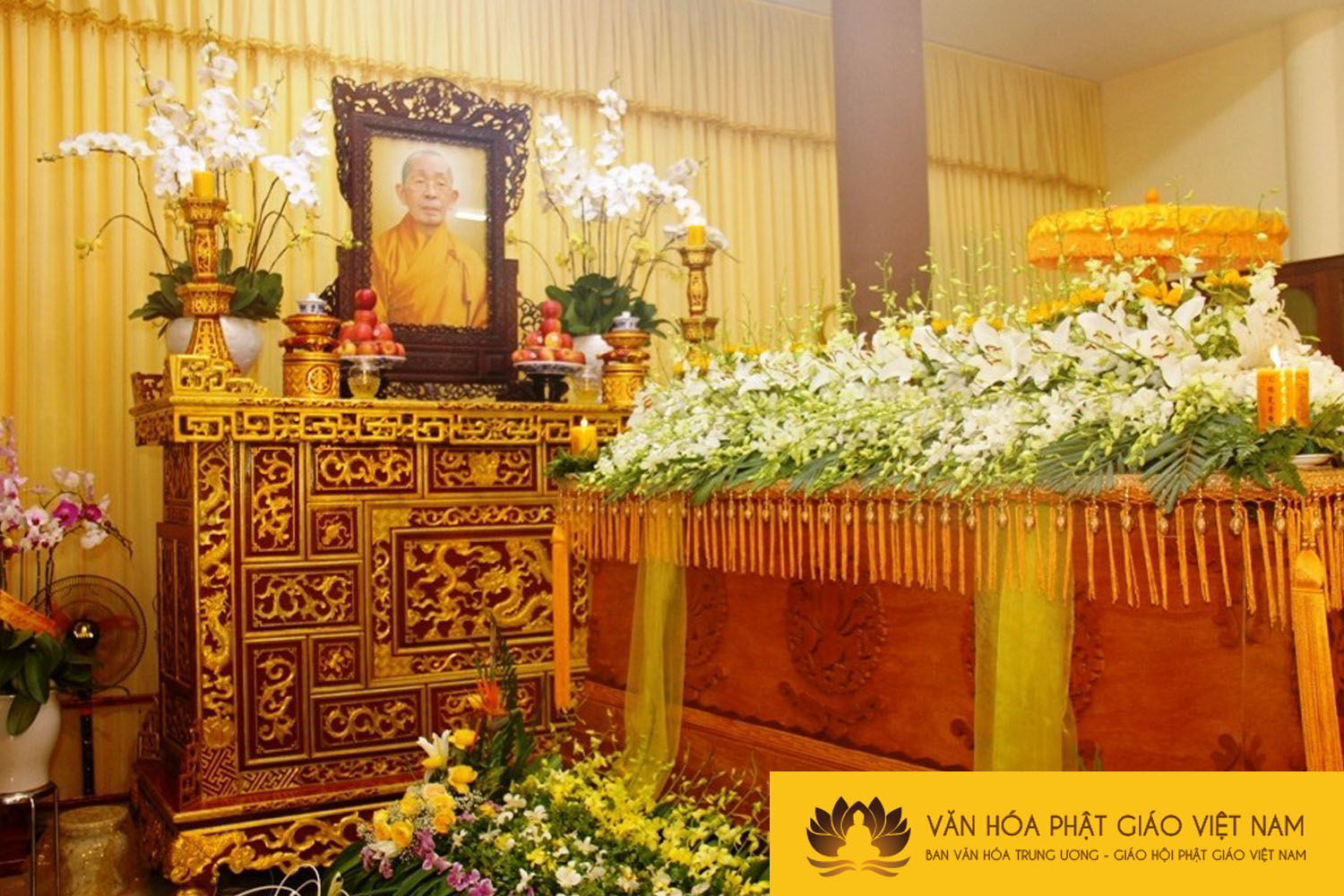 Giác linh đường nơi tôn trí kim quan Hòa thượng tân viên tịch