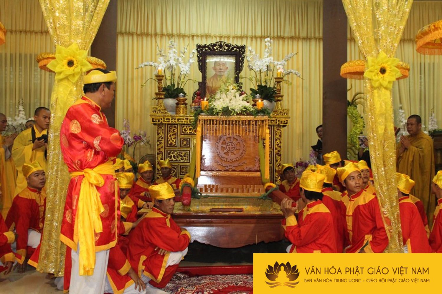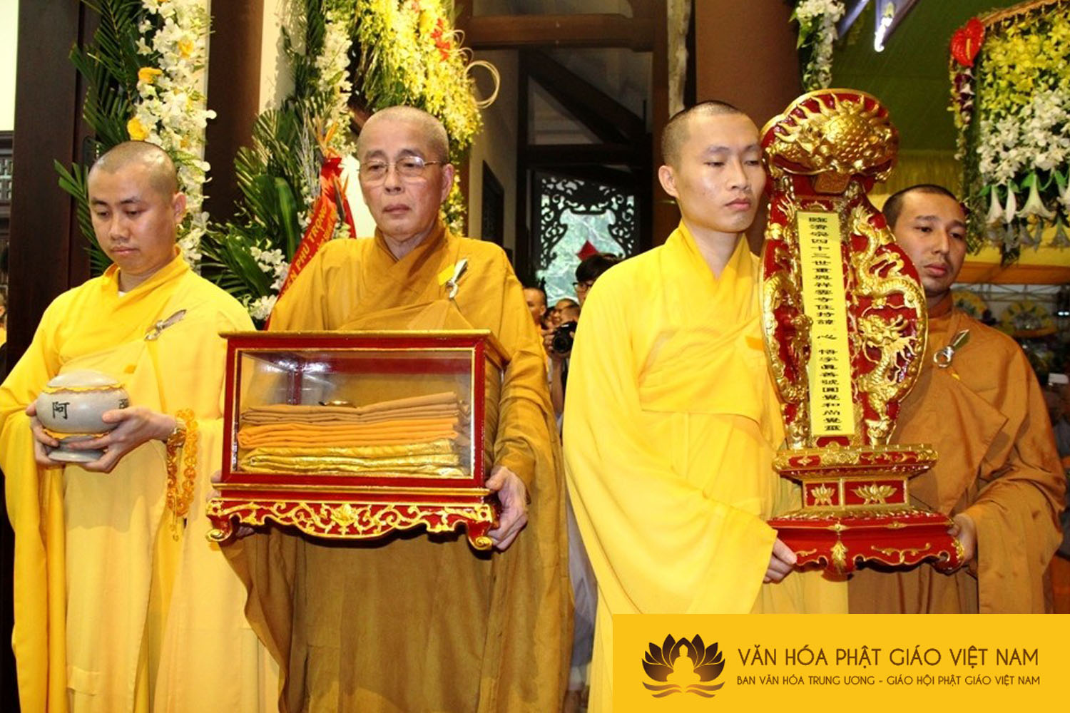 Cung thỉnh lư hương, long vị, di ảnh và y bát thượng giá, phụng tống kim quan nhập bảo tháp: