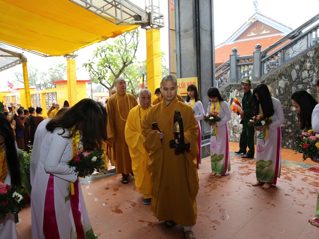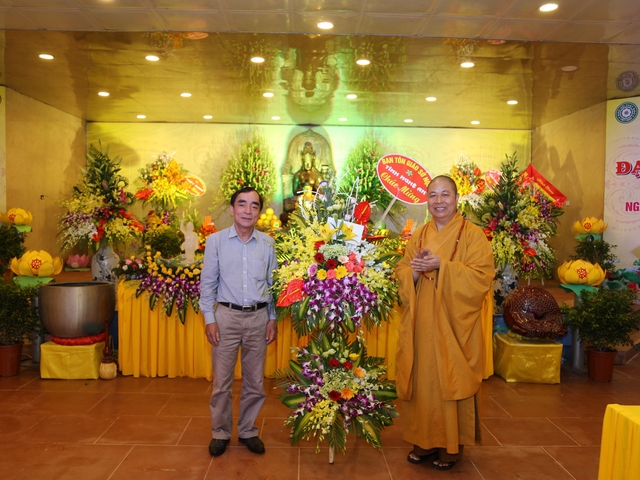 Quang lâm chứng minh và tham dự buổi lễ có HT.Thích Thanh Đàm, UV TT HĐCM GHPGVN; HT.Thích Thanh Nhiễu, Phó Chủ tịch TT HĐTS GHPGVN, Trưởng BTS GHPGVN tỉnh Nghệ An; TT.Thích Thọ Lạc, UV TT HĐTS, Phó ban TT Ban Văn hóa T.Ư GHPGVN, Phó ban TT BTS GHPGVN tỉnh Nghệ An; NS.Thích Diệu Nhẫn, Phó BTS GHPGVN tỉnh Nghệ An, chư Tôn đức Tăng ni và đông đảo quý Phật tử thập phương cùng về tham dự.