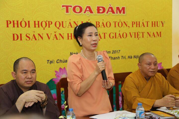 Các chuyên gia cũng chỉ ra rằng, công tác quản lý, bảo tồn và phát huy văn hoá Phật giáo Việt Nam hiện nay còn có sự cản trở rất lớn trong thực tế, đó chính là nhận thức của người dân, của cấp chính quyền cơ sở và còn cả của cơ quan chức năng và chính các Trụ trì tại các cơ sở thờ tự, cơ sở văn hoá của Phật giáo đã được xếp hạng. Kết luận tại buổi Toạ đàm, bà Đặng Thị Bích Liên - Thứ trưởng Bộ Văn hoá, Thể Thao và Du lịch đánh giá cao vai trò của Giáo hội Phật giáo Việt Nam nói chung và Ban Văn hoá Trung ương Giáo hội PGVN trong công tác quản lý, bảo tồn, phát huy di sản văn hoá Phật giáo Việt Nam trong thời gian qua và đặc biệt là thời gian gần đây. Dẫn chứng từ những cơ sở thờ tự, cơ sở văn hoá của Phật giáo hiện nay được tu bổ, xây dựng rất bài bản, chấp hành tốt các quy định của pháp luật trong công tác quản lý, bảo tồn và phát huy văn hoá nói chung và văn hoá Phật giáo nói chung có công rất lớn của Giáo hội và các trụ trì tại đây.