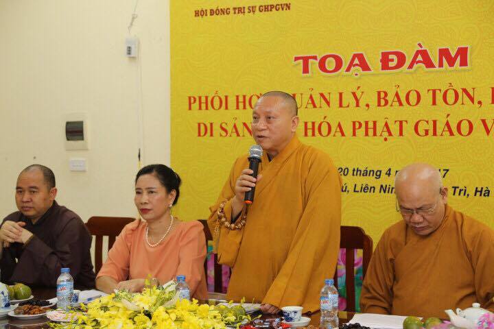 Sáng nay (20/04 nhằm ngày 24 tháng Ba năm Đinh Dậu) tại Trụ sở Văn phòng 2, Ban Văn hoá Trung ương Giáo hội Phật Giáo Việt Nam - xã Liên Ninh, huyện Thanh Trì, Thành phố Hà Nội, Ban Văn hoá Trung ương Giáo hội PGVN phối hợp cùng Bộ Văn hoá, Thể thao và Du lịch tổ chức Toạ đàm với chủ đề "Phối hợp quản lý, bảo tồn, phát huy di sản văn hoá Phật giáo Việt Nam".
