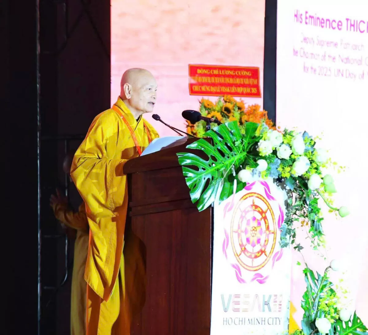 Đồng thời với tình hữu nghị Phật giáo Quốc tế hân hạnh đón tiếp Đại lão Hòa thượng Bhaddanta Candimābhivaṁsa - Tăng vương Ủy ban Tăng đoàn Tối cao Quốc gia Miến Điện; Trưởng lão Hòa thượng GS.TS. Brahmapundit - Chủ tịch ICDV, Chủ tịch IABU, Thành viên Hội đồng Tăng vương Tối cao Thái Lan; Tổng thống Sri Lanka - Anura Kumara Dissanayake; Trưởng lão Hòa thượng Diễn Giác (Shi Yanjue) - Chủ tịch Hiệp hội Phật giáo Trung Quốc; Đại lão Hòa thượng Samdech Preah Sangkhareach Bour Kry - Tăng vương Hội Phật giáo Dhammyutt, Vương quốc Campuchia; Đại lão Hòa thượng Am Limheng - Tăng vương Hội Phật giáo Mahānikāya Vương quốc Campuchia; Hòa thượng Warakagoda Sri Gnanarathana - Tăng vương Hệ phái Phật giáo Siyamopali, Tích Lan; Hòa thượng TS. Niyangoda Vigithasiri Anunayaka - Tăng vương Hệ phái Phật giáo Malwatta; Hòa thượng Karagoda Uyangoda Maithri Moorthi - Tăng vương Hệ phái Phật giáo Amrapura; Đại lão Hòa thượng Maha Veth Masaenai - Phó Chủ tịch, Tổ chức Hữu nghị Phật giáo Lào; Đại lão Hòa thượng TS. Bhadant Rahul Bodhi Mahathero - Chủ tịch Tăng đoàn Tỳ-kheo Ấn Độ; Đại lão Hòa thượng Buddhapriya Mahathero - Tăng vương Hội Phật giáo Bangladesh Bouddha Kristi Prachar, Bangladesh cùng Chư Tôn đức lãnh đạo các tổ chức Phật giáo tiêu biểu Đại biểu Đại diện Phật giáo của 108 Quốc gia trên thế giới cùng quang lâm Đại lễ Vesak LHQ 2025.