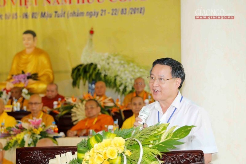 Thay mặt Ban Tôn giáo Chính phủ, ông Bùi Hữu Dược phát biểu chúc mừng, ôn lại lịch sử hào hùng của phụ nữ Việt Nam, trong đó có Ni giới Việt Nam.
