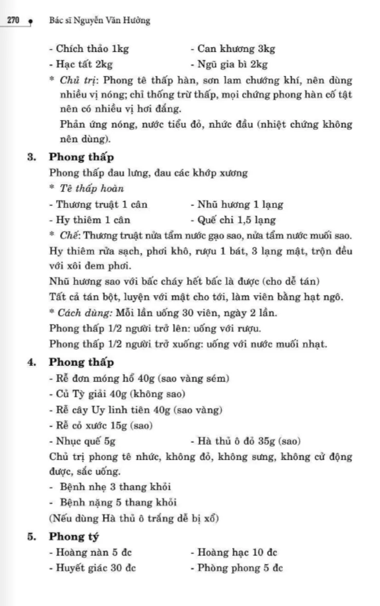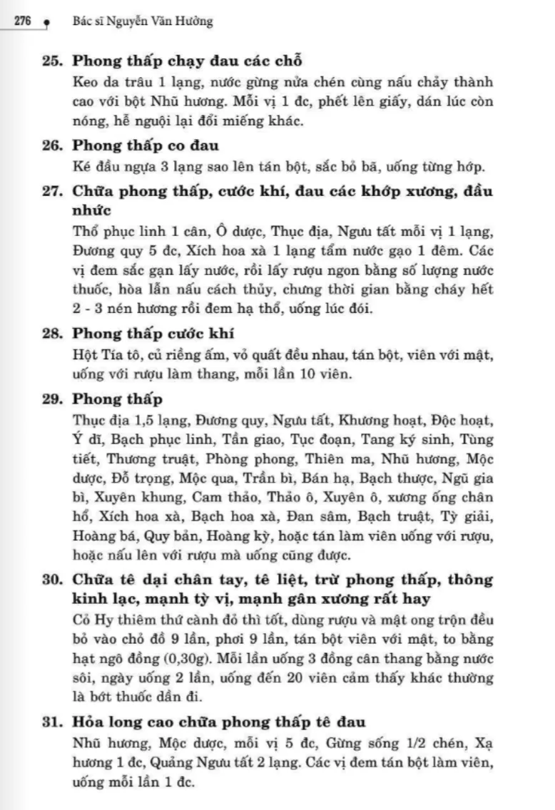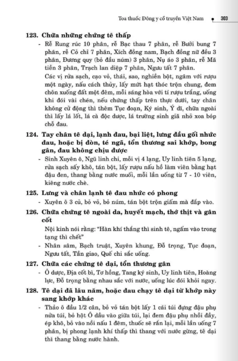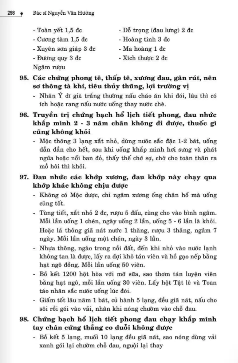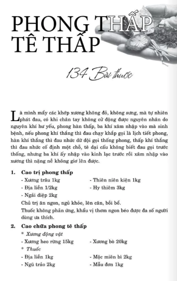 134 bài thuốc trị phong thấp, tê thấp