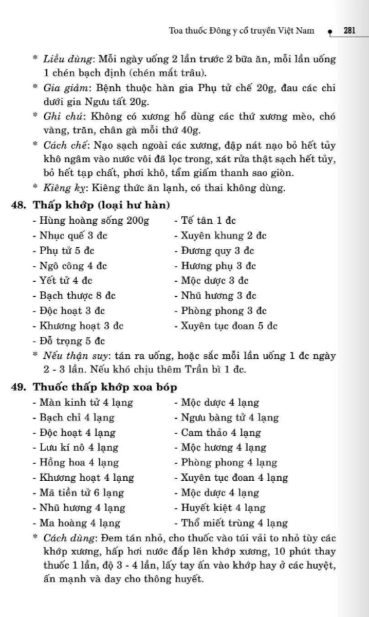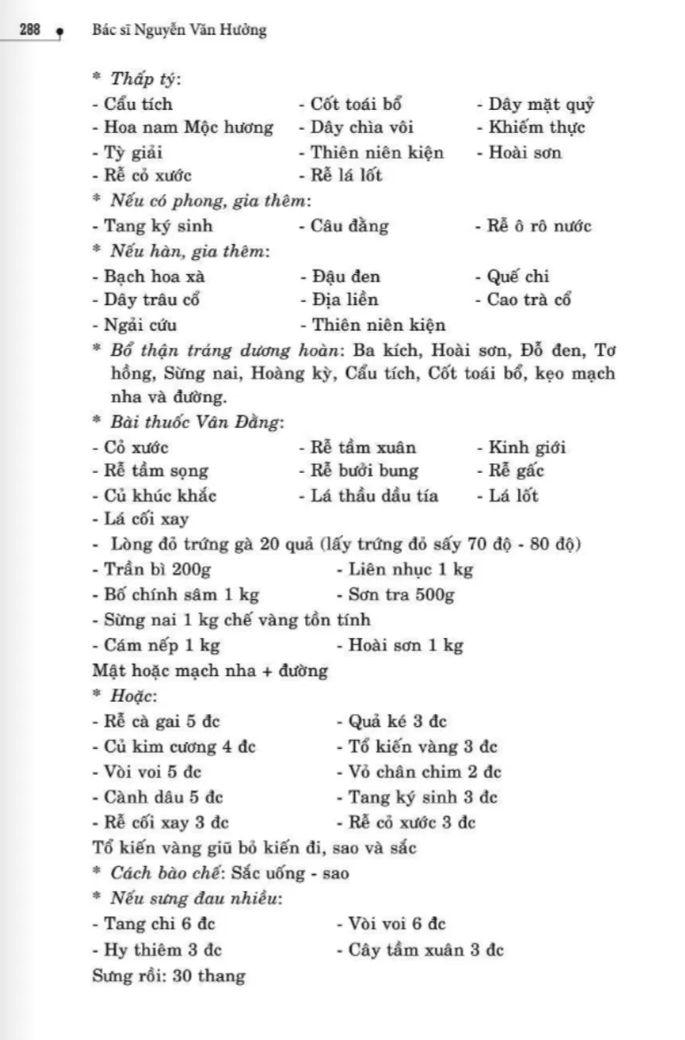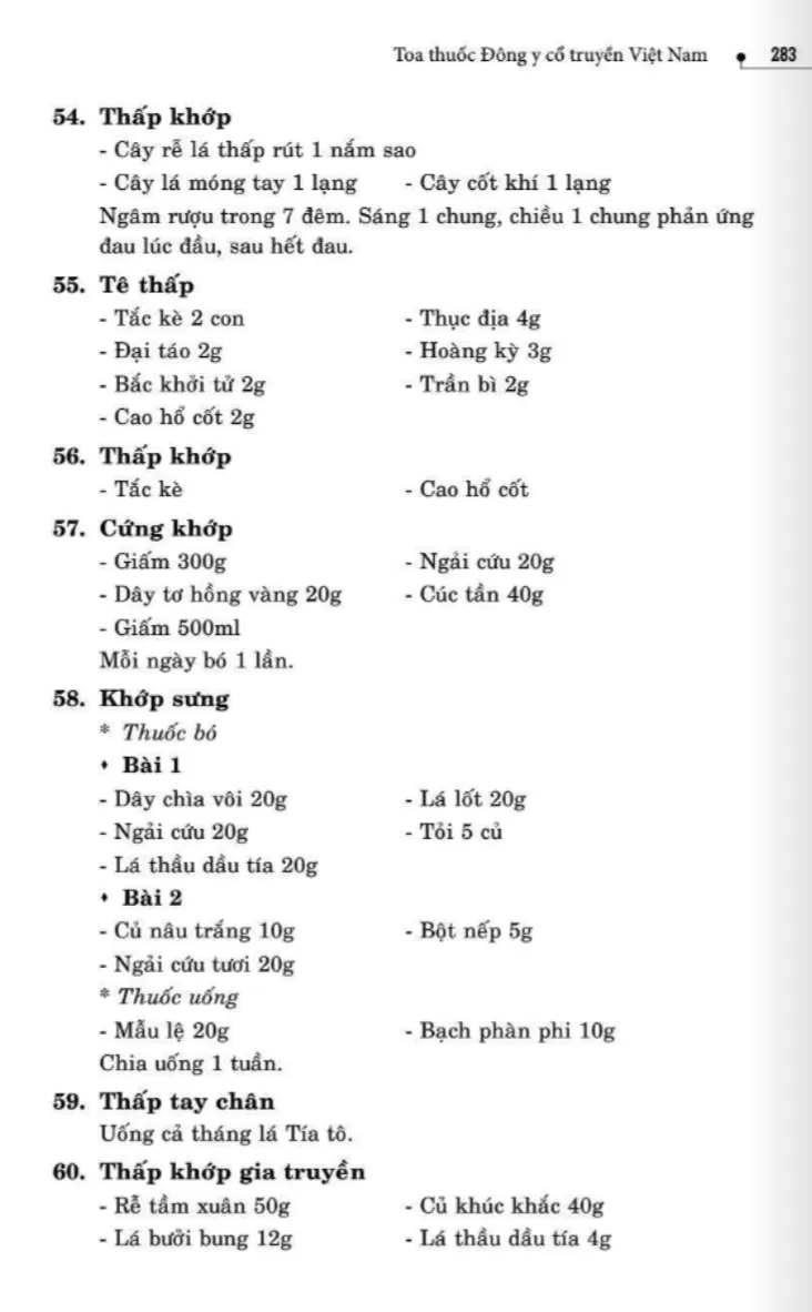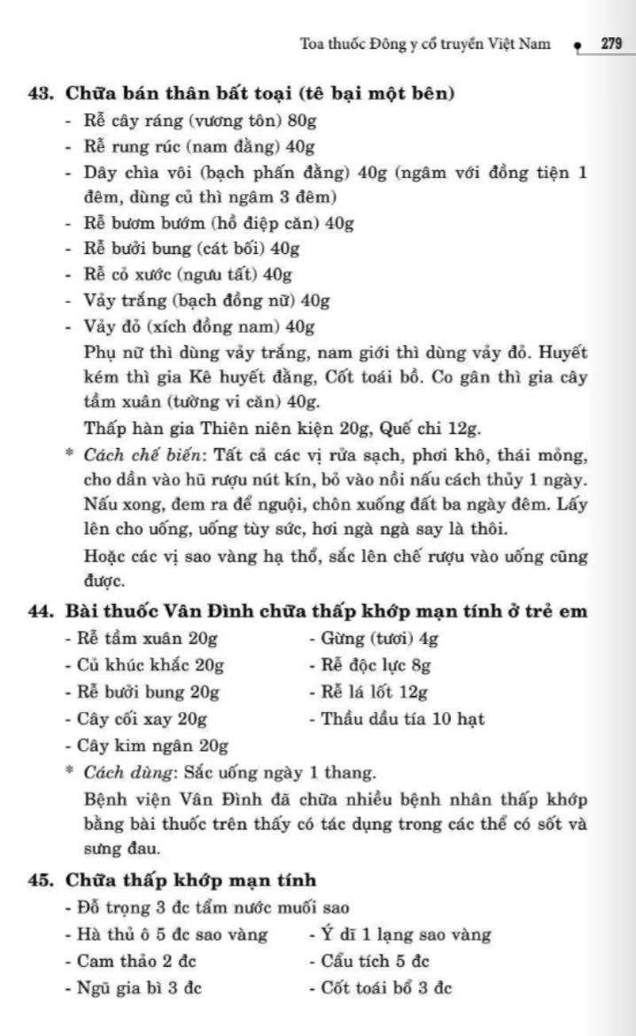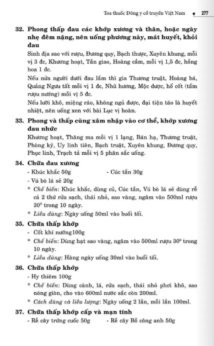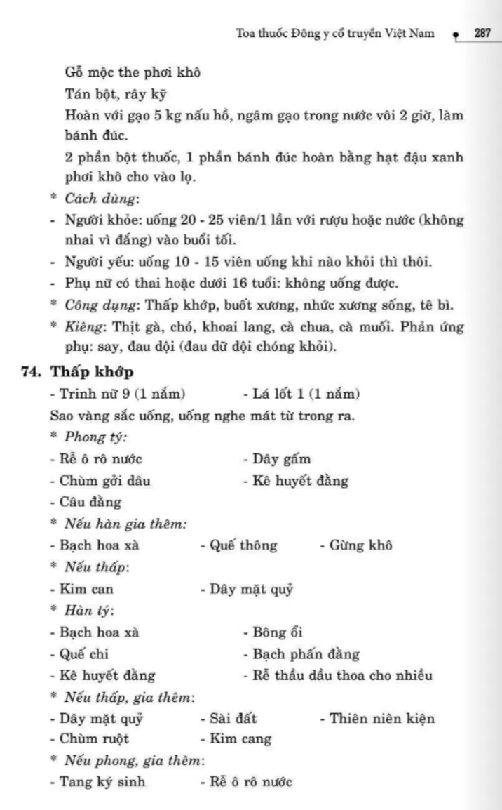 134 bài thuốc trị phong thấp, tê thấp