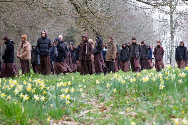 Muốn tiếp xúc với Thiên đàng, bạn cần được huấn luyện đôi chút và cần có một người để giúp bạn, một người anh hay một người chị đã biết thực tập rồi. Khi chúng ta thấy một người đi trong chánh niệm và thưởng thức từng bước chân đi, ta có hứng khởi trở về với chính ta, và ta muốn đi như họ. Có một tù nhân viết thư cho tôi rằng anh ta đã đọc sách tôi và đã học cách thực tập thiền hành trong nhà tù. Anh nói anh luôn luôn lên xuống cầu thang trong chánh niệm và anh thưởng thức từng bước chân. Từ khi bắt đầu sự thực tâp này, đời sống của anh trở nên dễ chịu hơn. Khi anh thấy các bạn tù khác hấp tấp lên xuống cầu thang, không vững chãi, không bình tĩnh, không niềm vui. Anh mong cho họ học cách đi thiền hành như anh, vì mỗi bước chân anh đi đều nuôi dưỡng và chuyển hóa anh.