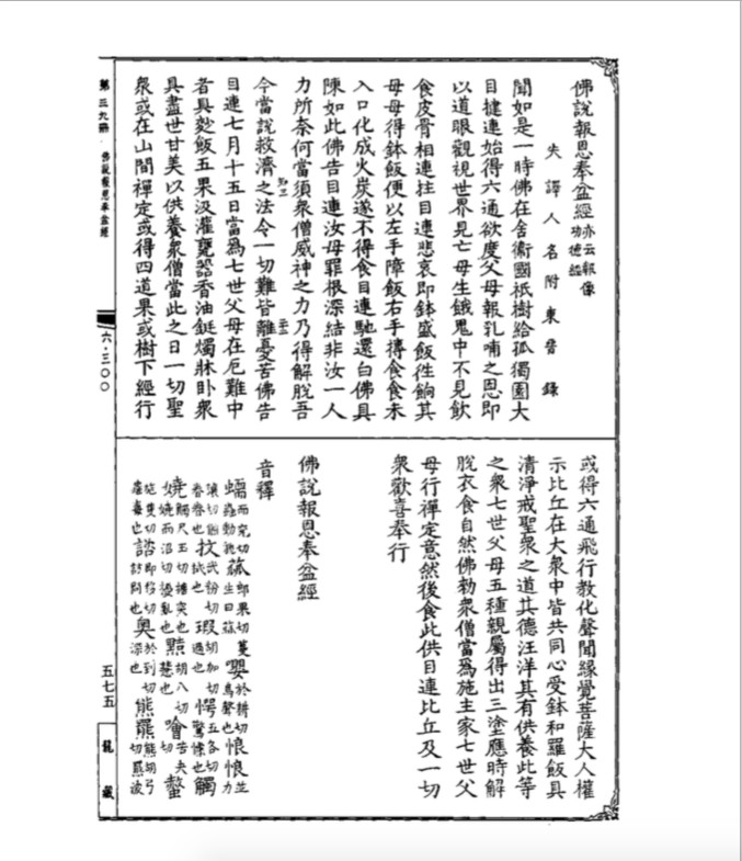 Bản dịch Kinh Phật thuyết báo ân phụng bồn (Đại thừa Ngũ kinh, tập 39, trang 575)