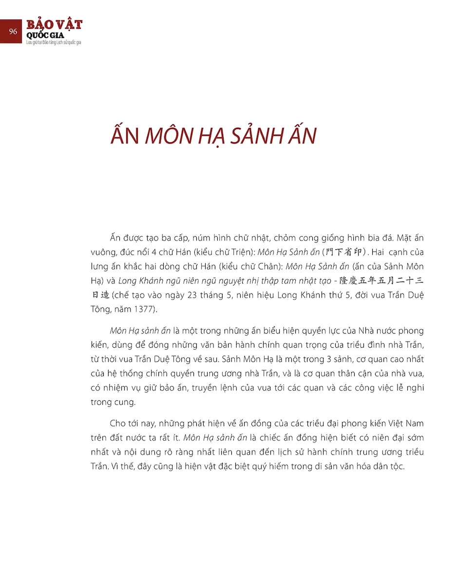 Bảo vật Quốc gia: Ấn Môn hạ Sảnh ấn