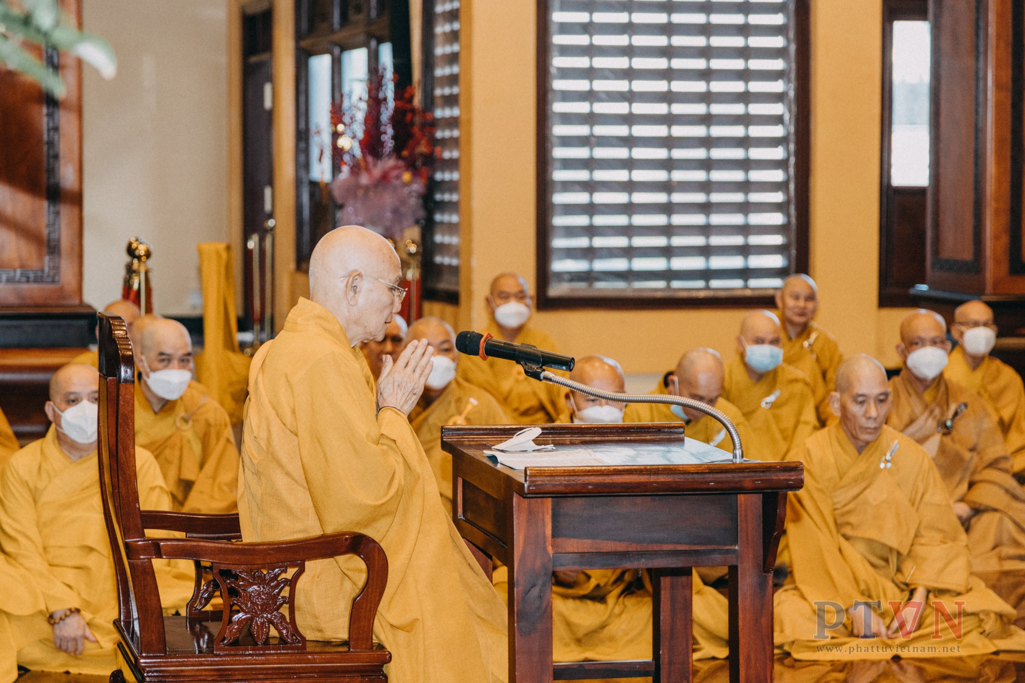 Hòa thượng Thích Minh Thông – Phó ban Trị sự kiêm Trưởng ban Giáo dục Phật giáo GHPGVN TP.HCM đã trùng tuyên giới luật Phật chế định giữa đại chúng, ôn lại những điều Phật dạy nhằm trưởng dưỡng đạo tâm, thanh tịnh Tăng đoàn, trang nghiêm Giáo hội.