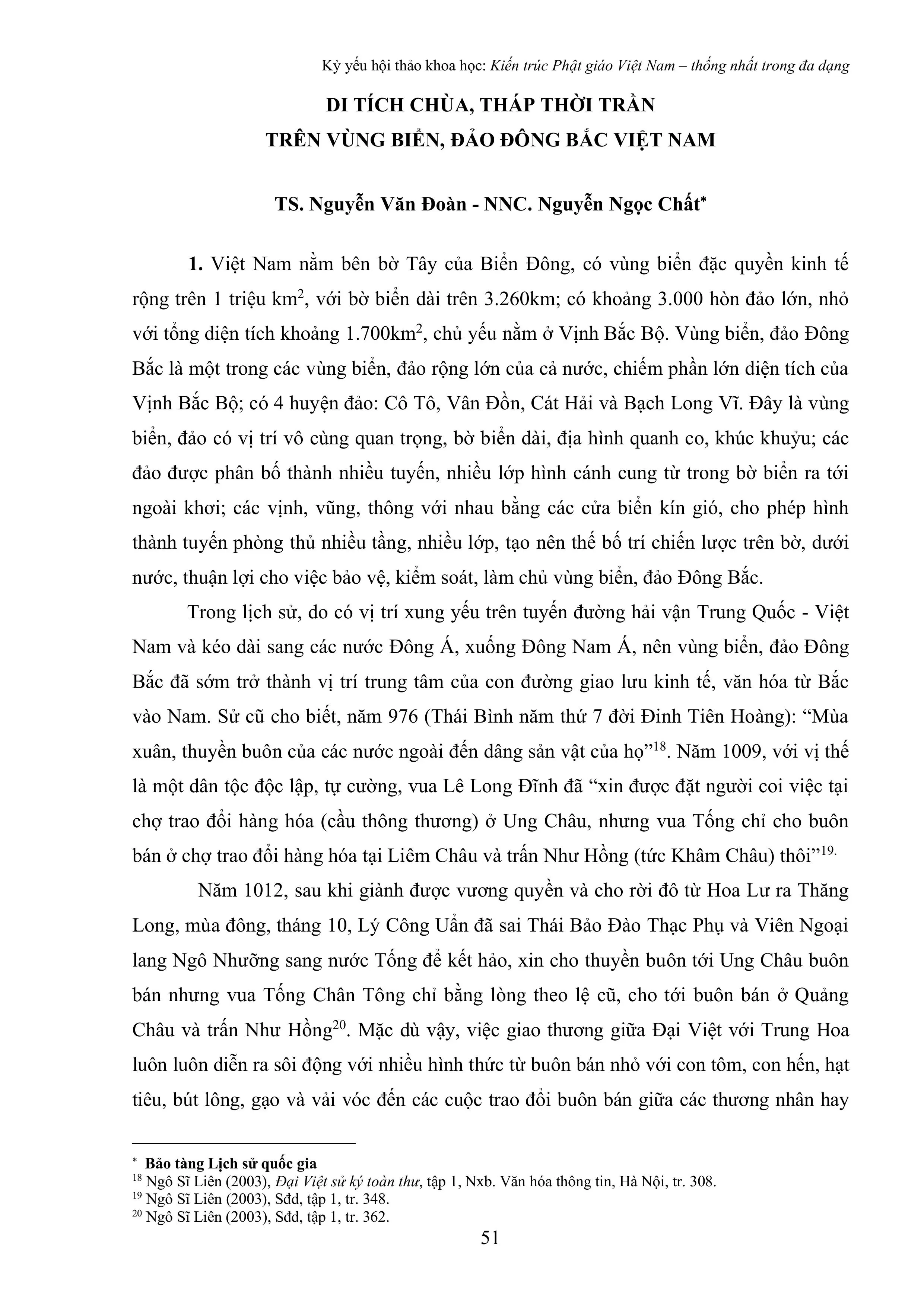 Di tích chùa, tháp Thời Trần trên vùng biển, đảo Đông Bắc Việt Nam