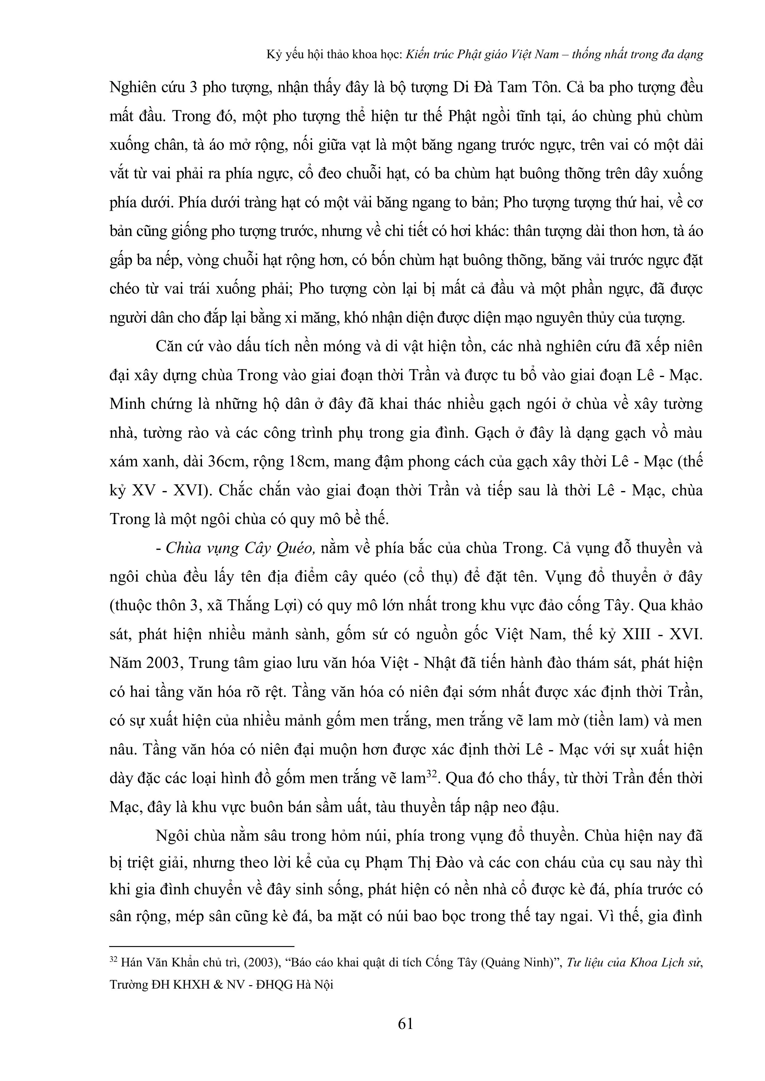 Nguồn: Kỷ yếu Hội thảo Khoa học Kiến trúc Phật giáo Việt Nam:"Thống nhất trong đa dạng"