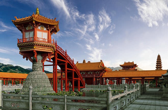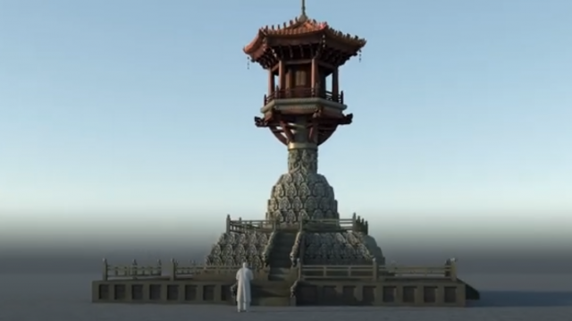 Hình ảnh phục dựng kiến trúc chùa Một Cột thời Lý