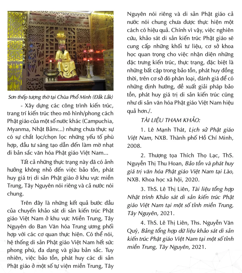 Kết quả khảo sát Di sản Kiến trúc Phật giáo tại một số tỉnh Miền Trung, Tây Nguyên