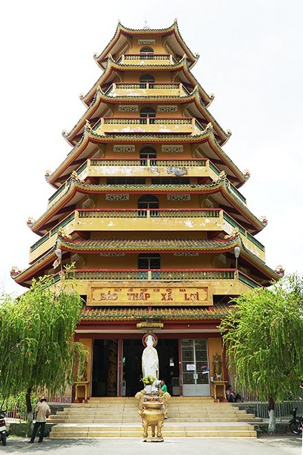 Trước lối vào chùa có Bảo tháp Xá Lợi hình lục giác 7 tầng. Tầng cao nhất thờ Xá Lợi Phật. Tháp được khởi công xây dựng vào năm 1970. Trong sân chùa còn có tượng Quán Thế Âm Bồ Tát toạ dưới bóng cây bồ đề do Đại đức Narada mang từ Sri Lanka (Tích Lan) sang trồng năm 1953.