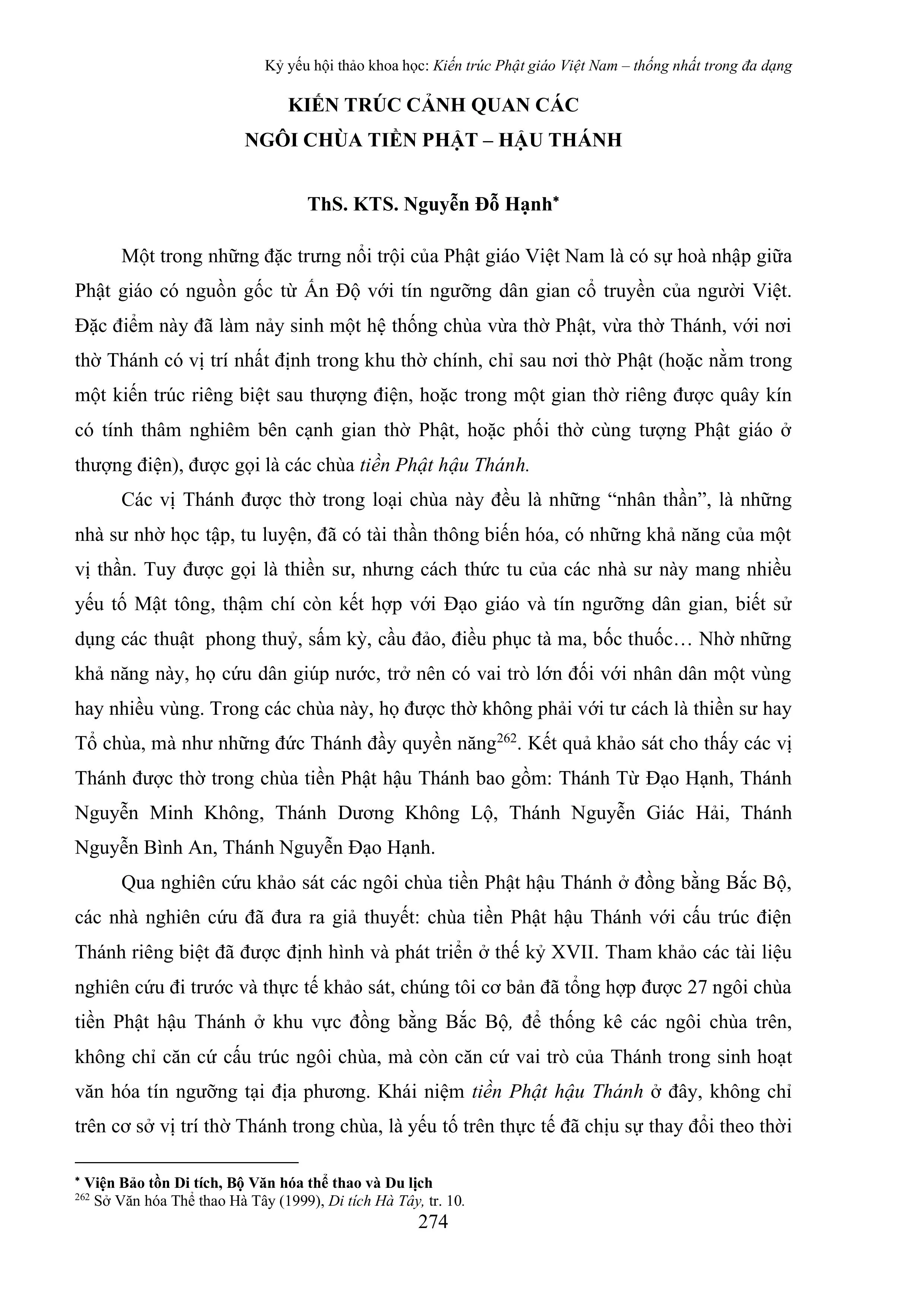 Nguồn: Kỷ yếu Hội thảo Khoa học Kiến trúc Phật giáo Việt Nam:"Thống nhất trong đa dạng"