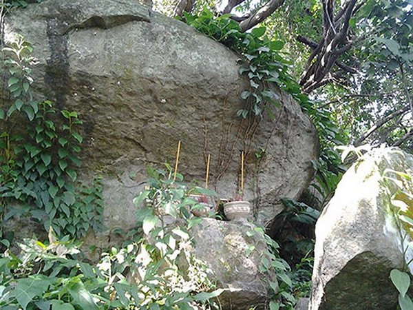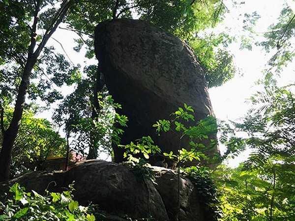 Sừng sững trên núi có 1 khối đá khổng lồ, nằm chồng lên một khối đá nhỏ nhưng bằng phẳng. Nhìn từ xa khối đá như đầu con rồng đang há miệng. Dân gian đặt tên hai tảng đá này là Hàm Rồng. Tương truyền người Chân Lạp có đến đây lập một am miếu và tôn thờ đá Hàm Rồng là thần Sơn Thạch. Hiện ngôi miếu vẫn còn.