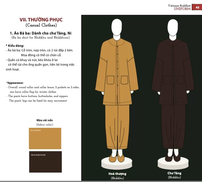 Pháp phục Phật giáo Việt Nam: 1. Mẫu Pháp phục Phật giáo Bắc Tông - 1.1. Pháp phhục dành cho Tu sĩ - VI & VII. Thường phục