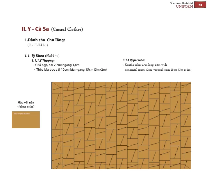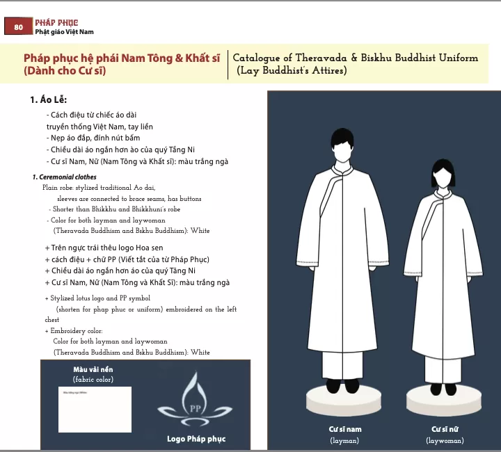 - Pháp phục Phật giáo Việt Nam: 1. Mẫu Pháp phục Phật giáo Bắc Tông - 1.1. Pháp phhục dành cho Tu sĩ - II. Lễ phục & III. Y Ca Sa