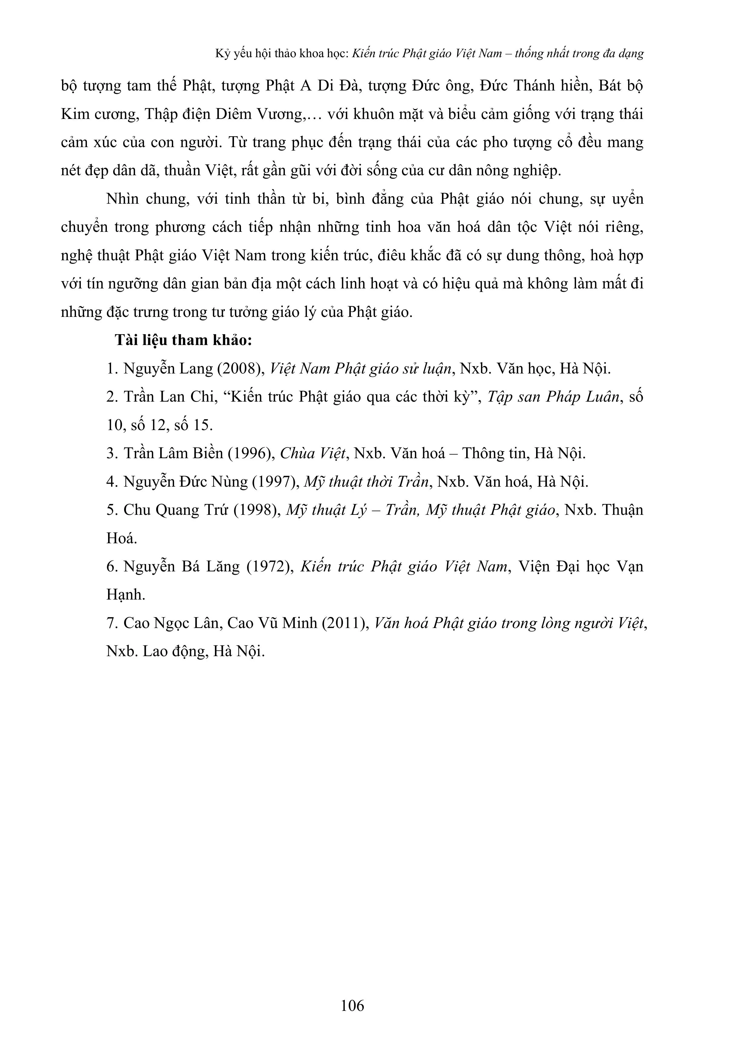 Nguồn: Kỷ yếu Hội thảo Khoa học Kiến trúc Phật giáo Việt Nam:"Thống nhất trong đa dạng"